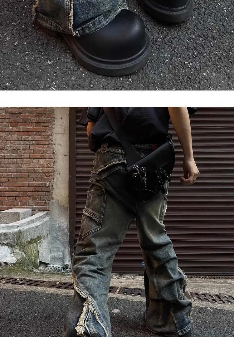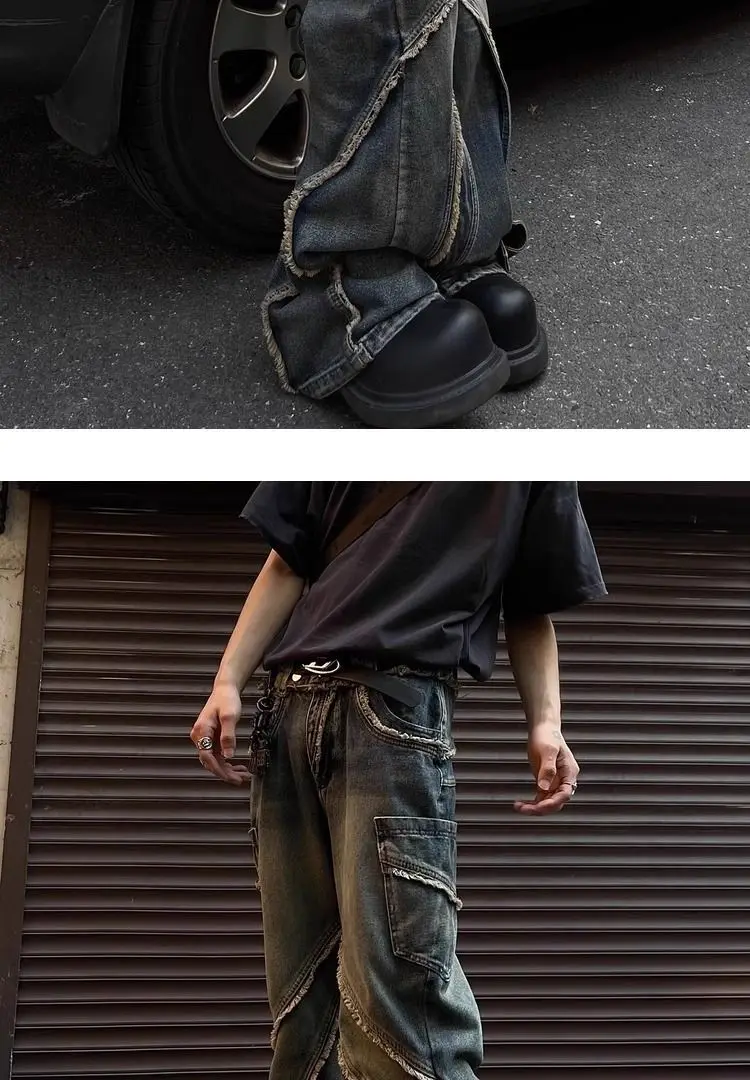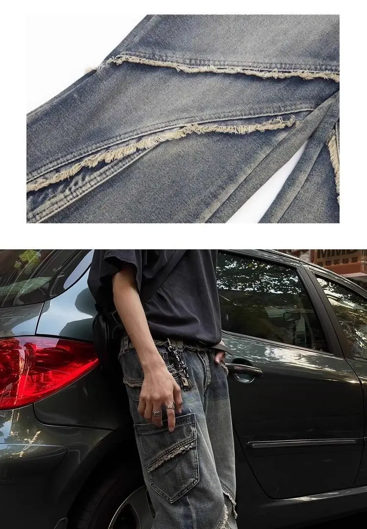 Hip hop retro straight leg washed denim pants for men and women loose and slightly flared wide leg casual pants for the streets