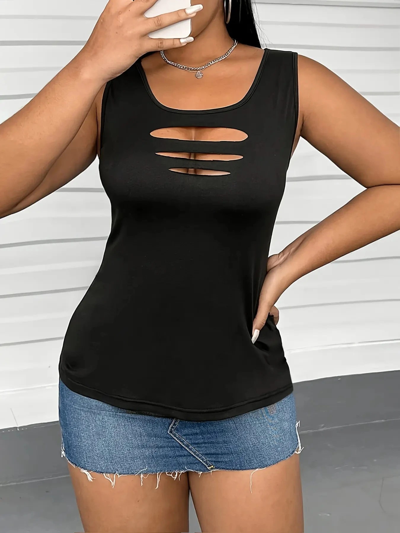 Hollow Ripped Vest, Tight-Fitting Inner Navel-Baring Top, Summer Sleeveless Plus Size Vest