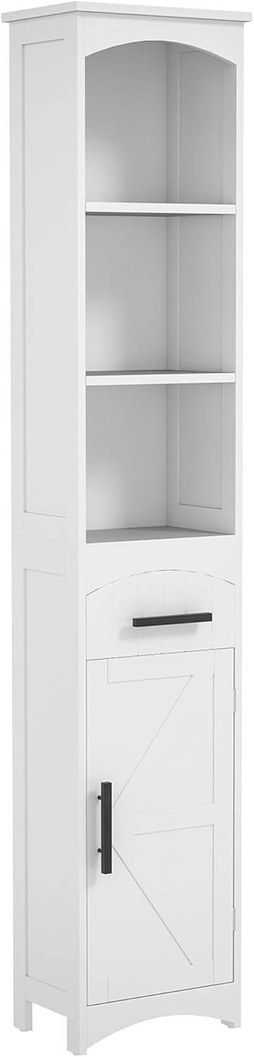 Homcom Tall Bathroom Storage Cabinet, Farmhouse Narrow Bathroom Storage Cabinet With Recessed Drawer And Barn Door, Linen