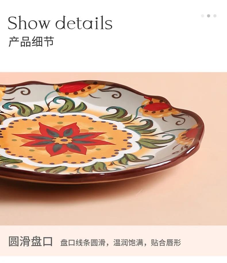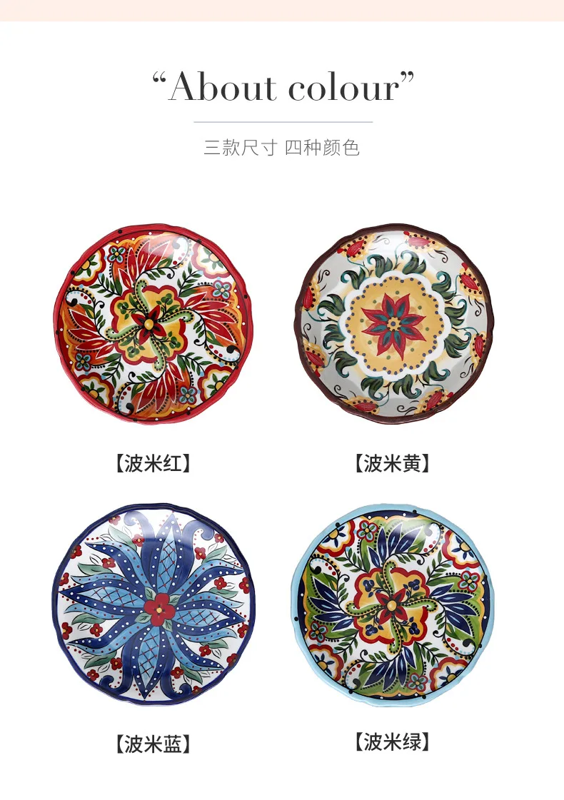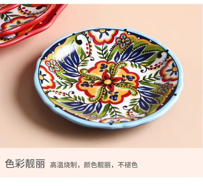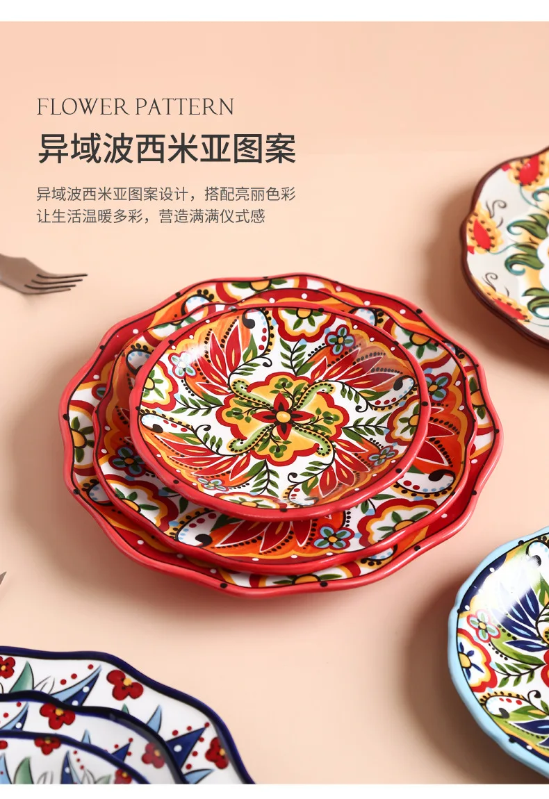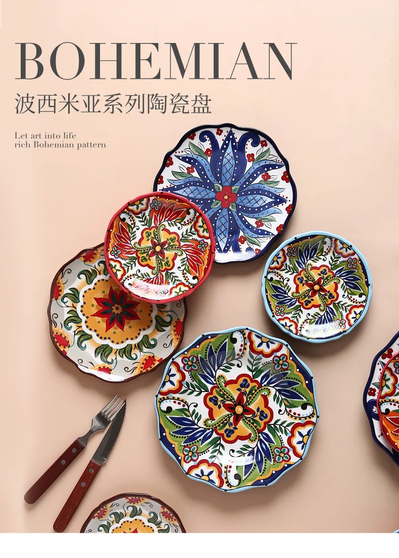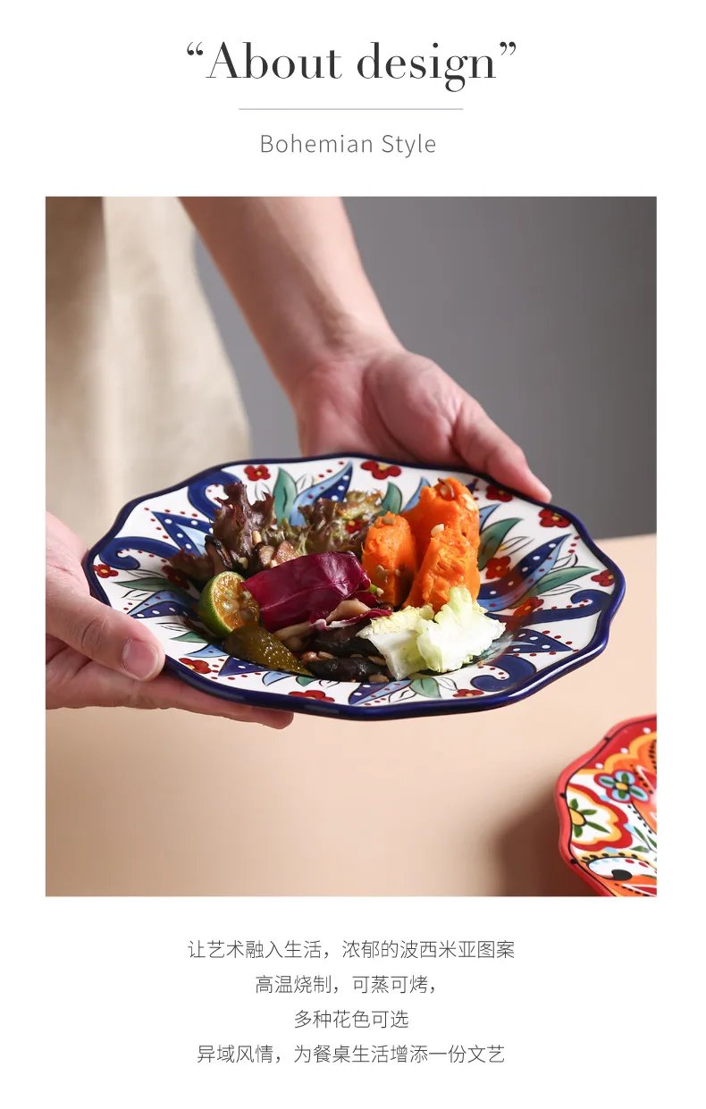 Home Dinnerware Set Bohemian Ceramic Plates Dinner Plates Sets Pasta Salad Vintage Steak Kitchen Dishes Complete Tableware N