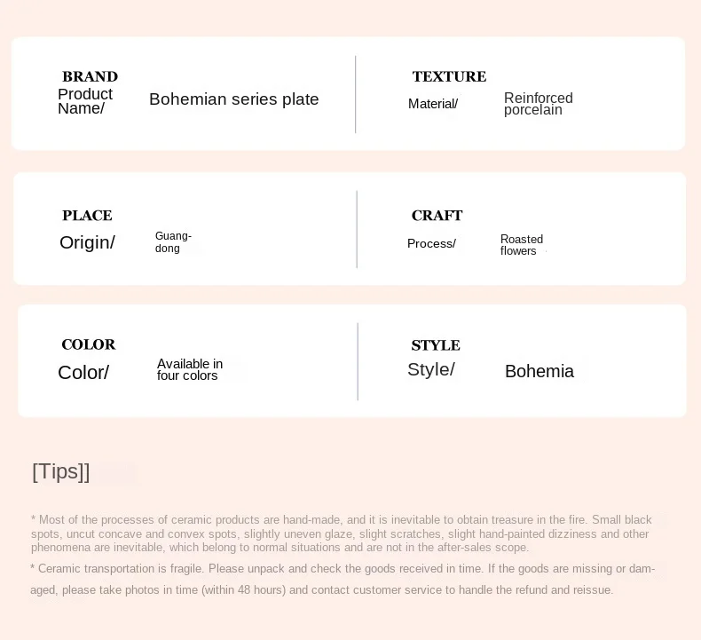 Product Description: This Bohemian ceramic dinnerware set is ideal for your kitchen. The set includes dinner plates, salad plates, and pasta plates, perfect for serving a variety of dishes in style. The vintage design adds a touch of elegance to your dining experience. Whether you are serving up a delicious steak or a fresh salad, this Italian-inspired dinnerware set has got you covered. Upgrade your kitchen with this complete set of plates.