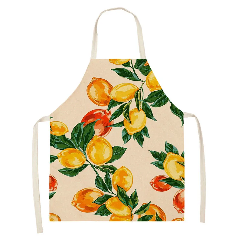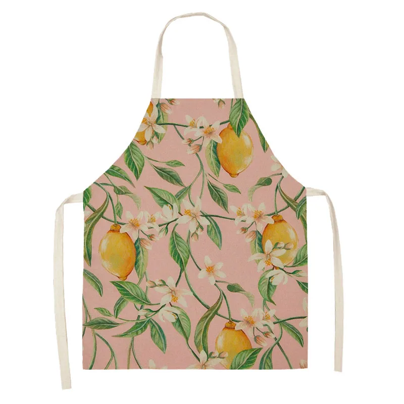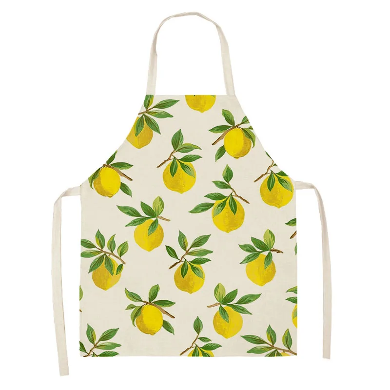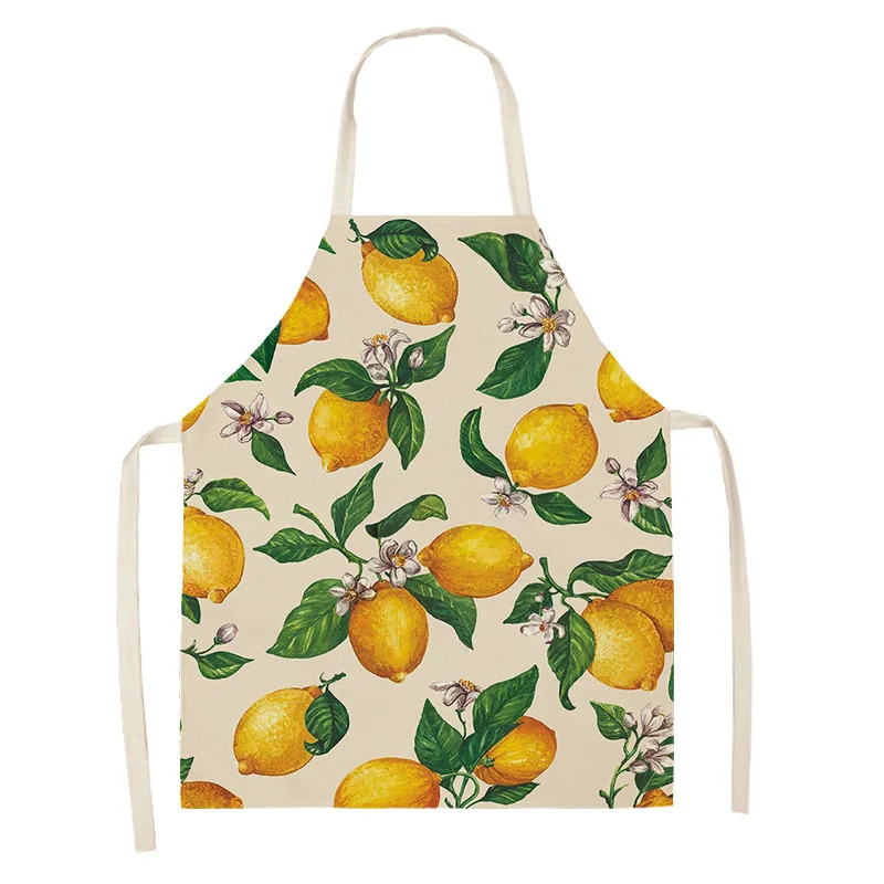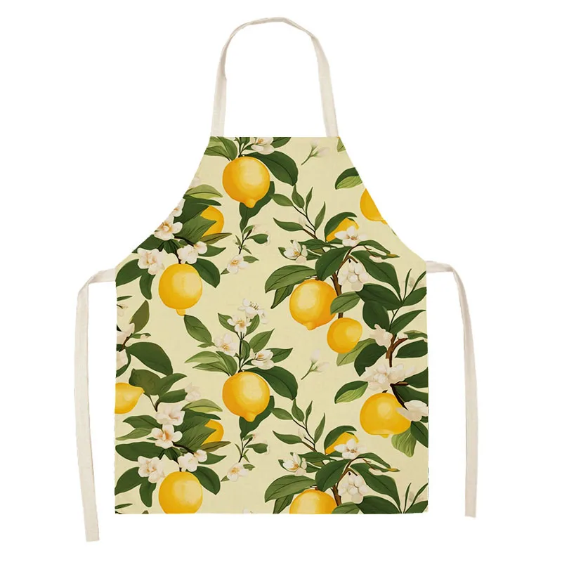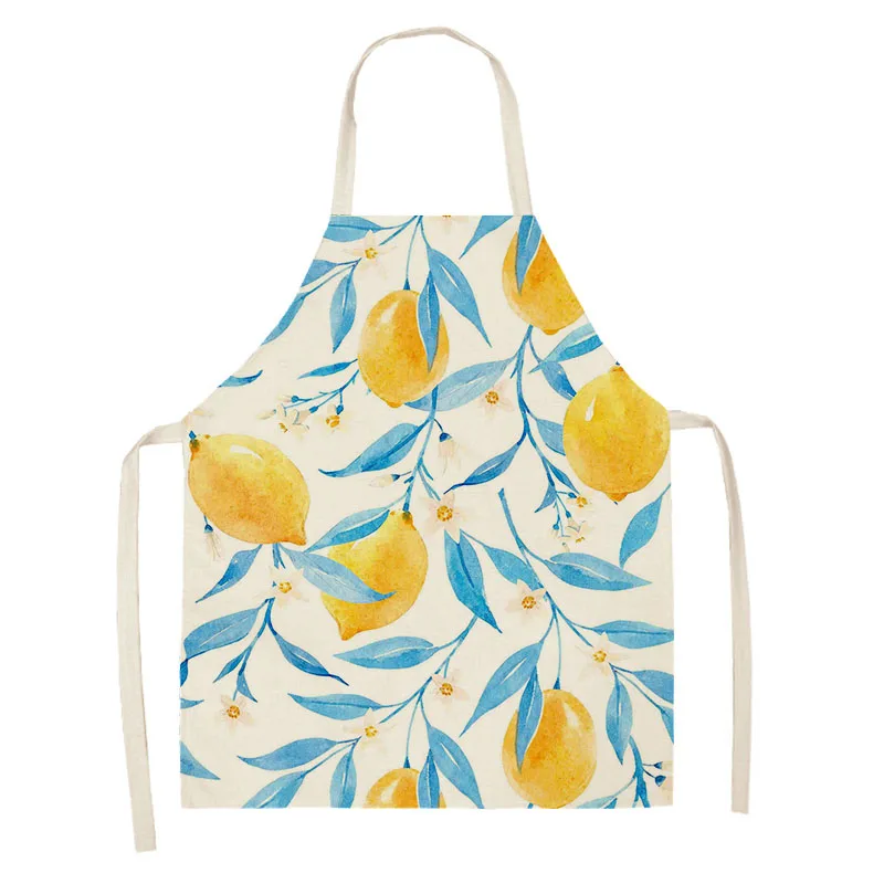 Home Kitchen Apron Women Cooking Household Cleaning Cotton Linen Fruit Lemon Pattern Characteristic Design