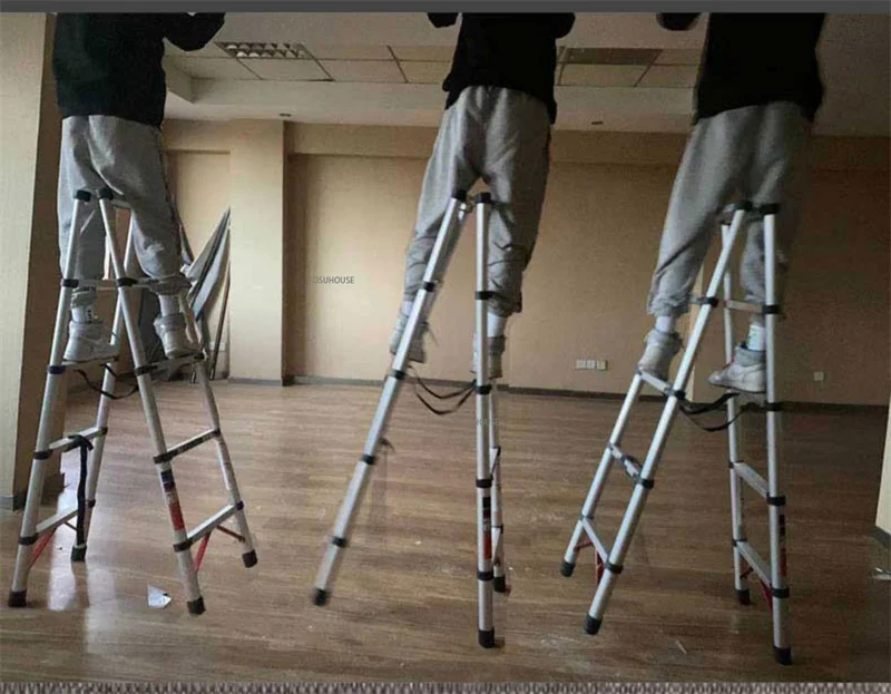 Home Multifunctional Engineering Ladders Aluminum Telescopic Step Ladder Portable Folding Stairs Walkable Herringbone Ladder Z