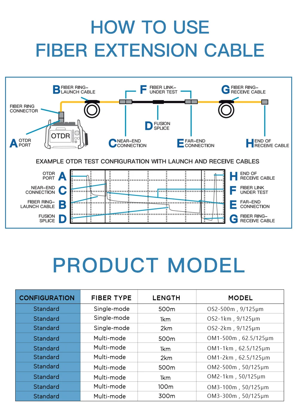 Hot Sale Orientek 1KM Customized Connector Fiber Optic OTDR Test Extension Cord Launch Cable Dead Zone Eliminator