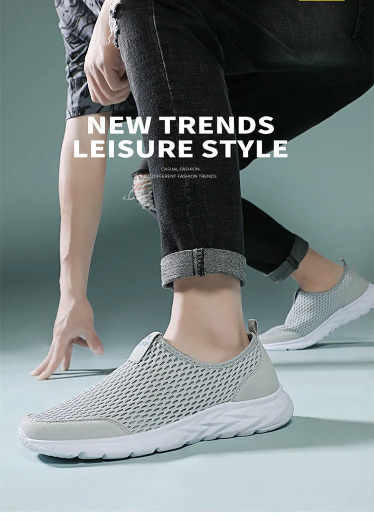 Hot Sale Summer Sneakers Men Breathable Mesh Lightweight Men’s Running Shoes Cheap Flat Low Cut Slip-on Big Size 48 Men Trainers