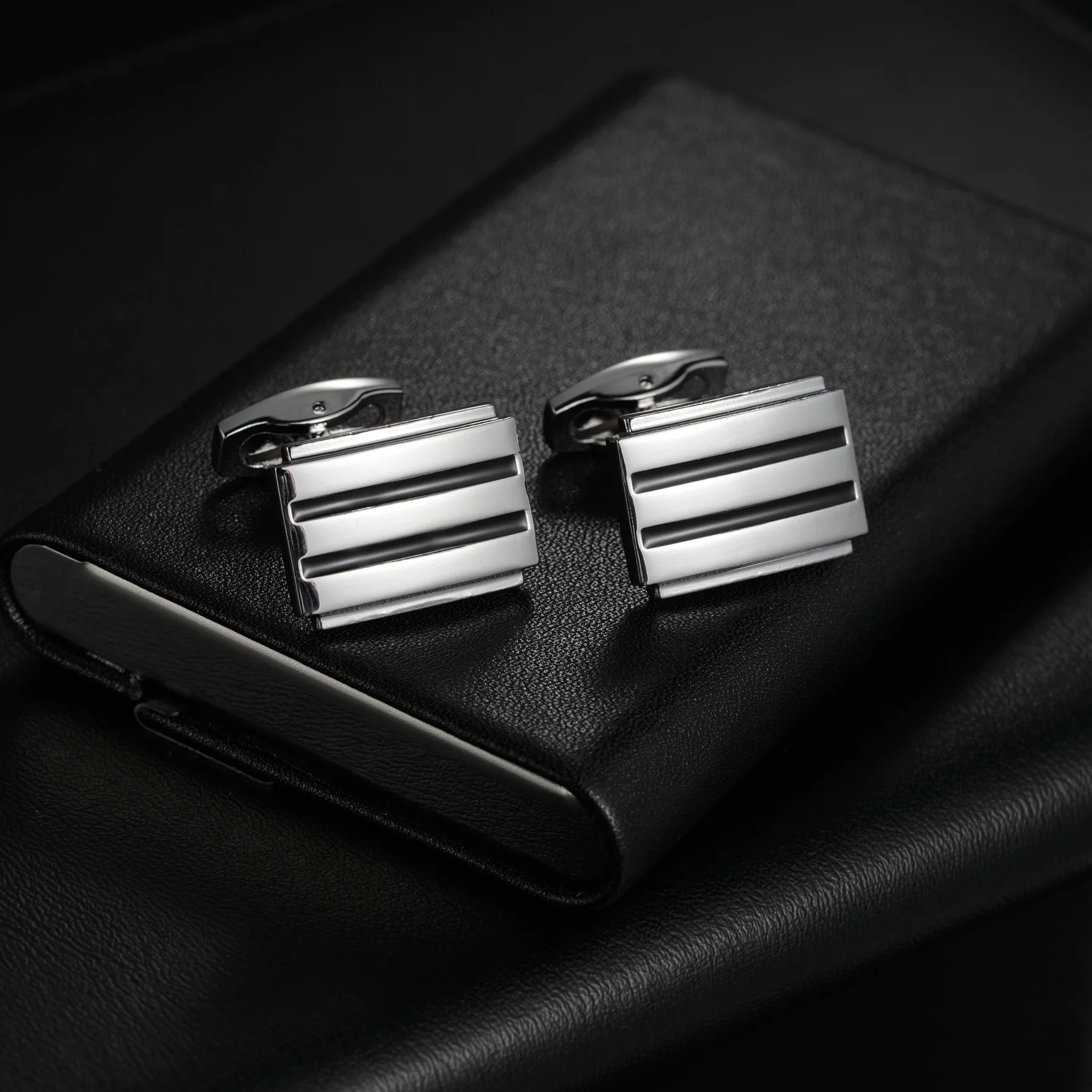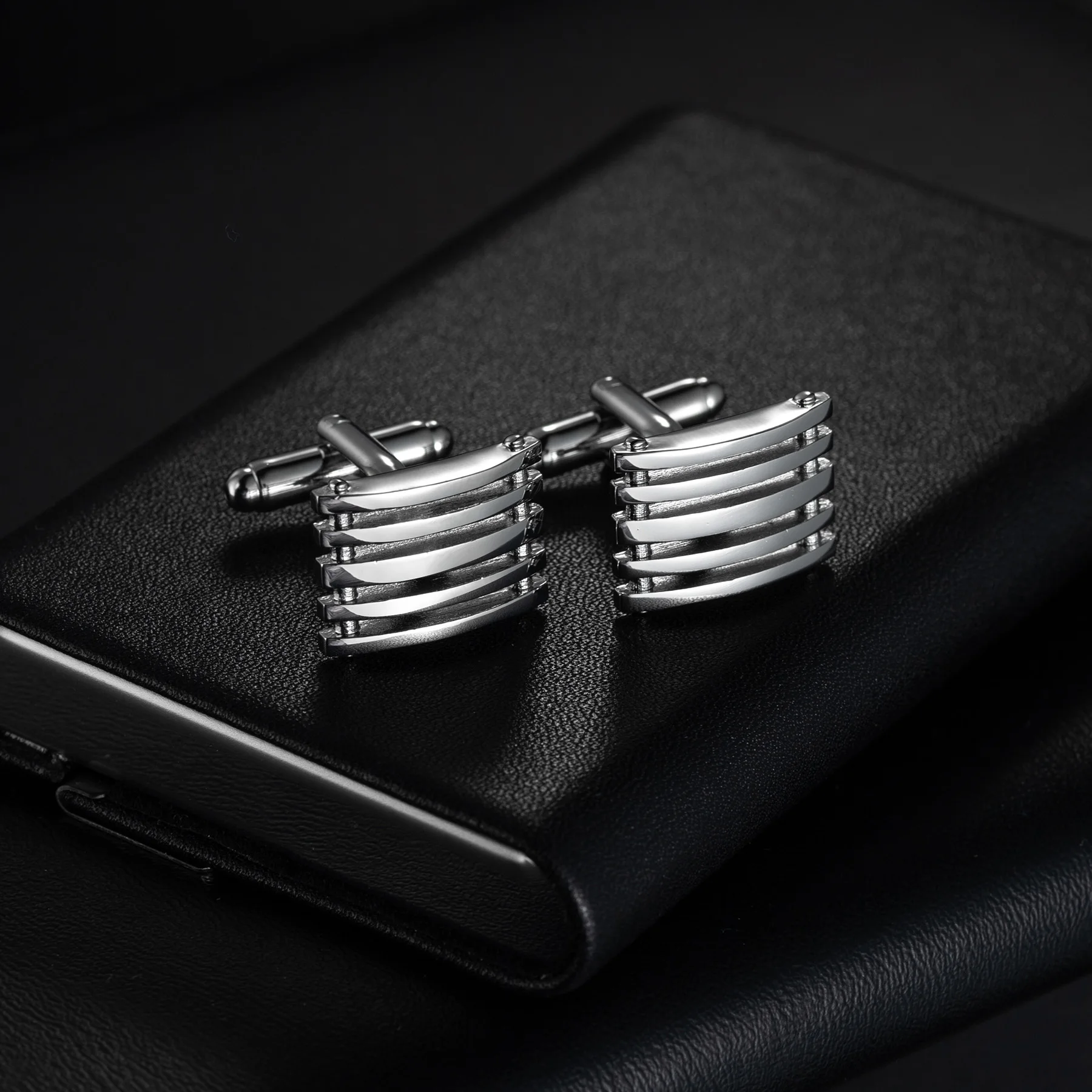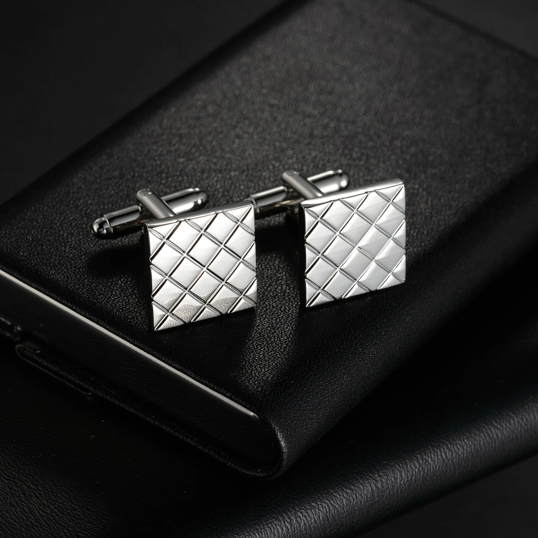 Hot Selling Cufflinks High Quality Grid Stripes Rectangle Round Design Shirt Cufflinks Wedding Business Jewelry Anniversary Gift