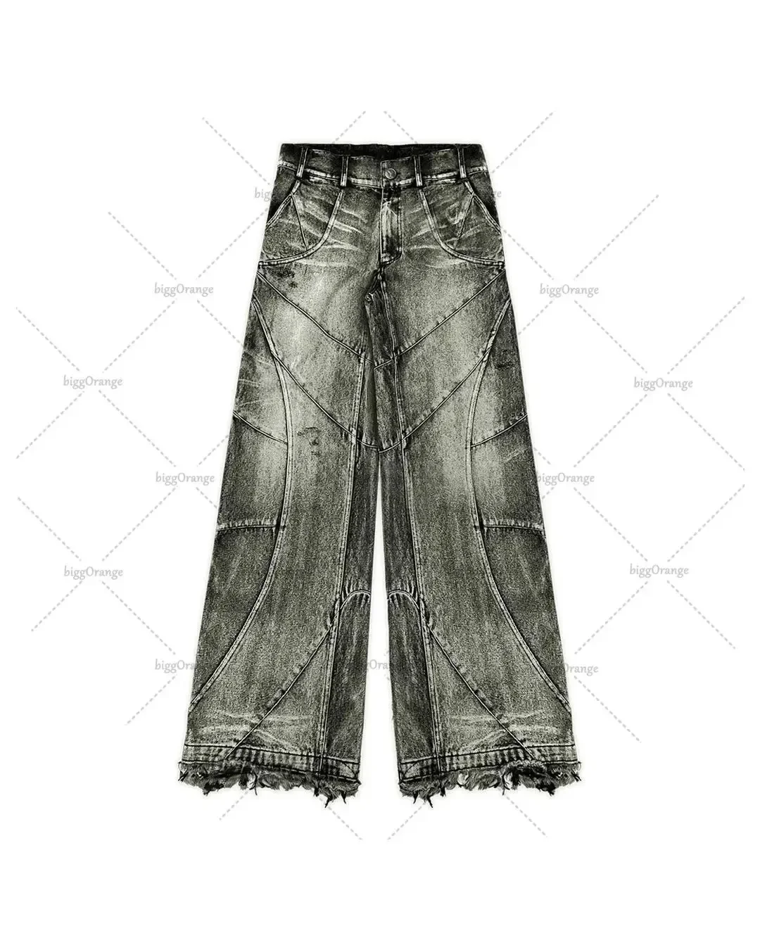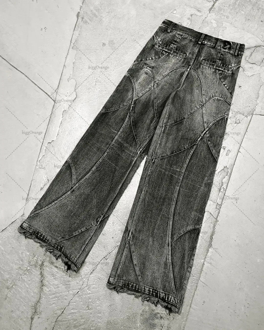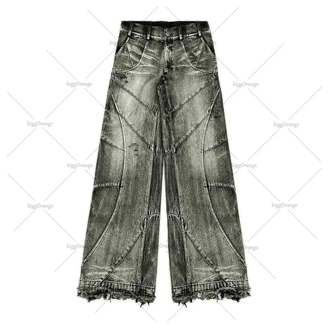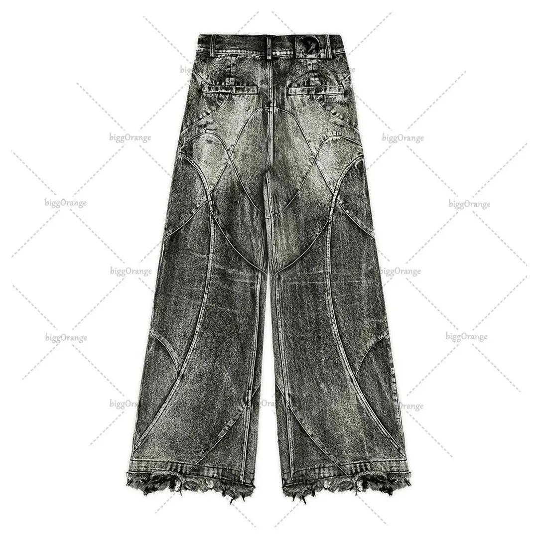 Hot-selling Retro Washed Jeans Men’s Goth Street Trend Straight Denim Trousers