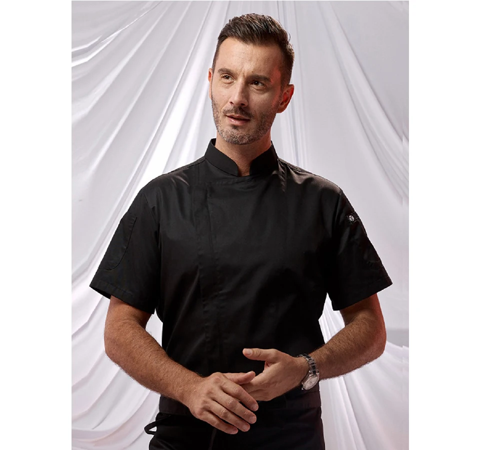 Hotel Chef Overalls Short-Sleeved Restaurant Male Cook Zipper Uniform Cafe Milk Tea Shop Waiter Jacket Light and Breathable