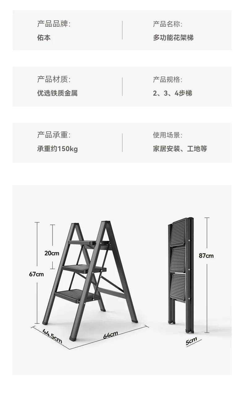 Household Folding Expansion Thickened Ladder Stool Indoor Multifunctional Ladder Three Steps Climbing Ladder Flower Ladders
