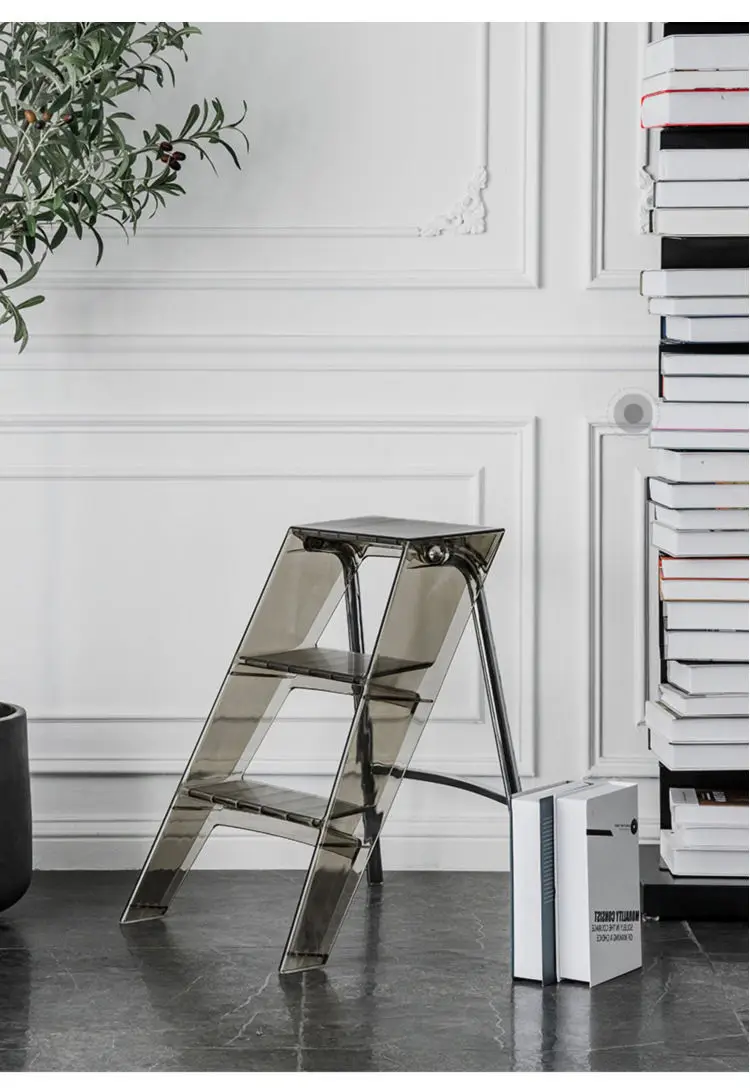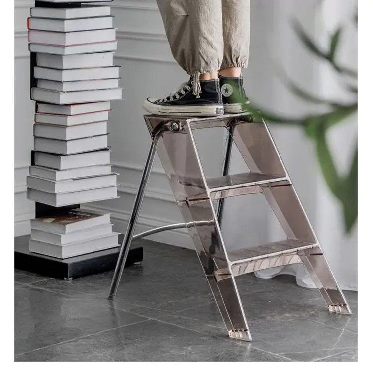 Household Multifunctional Transparent Folding Ladder Nordic Acrylic Step Stool Indoor Non-slip Three-step Herringbone Ladder