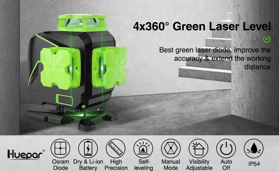 Huepar S04CG-L 4 x 360 Green Laser Level Feature: