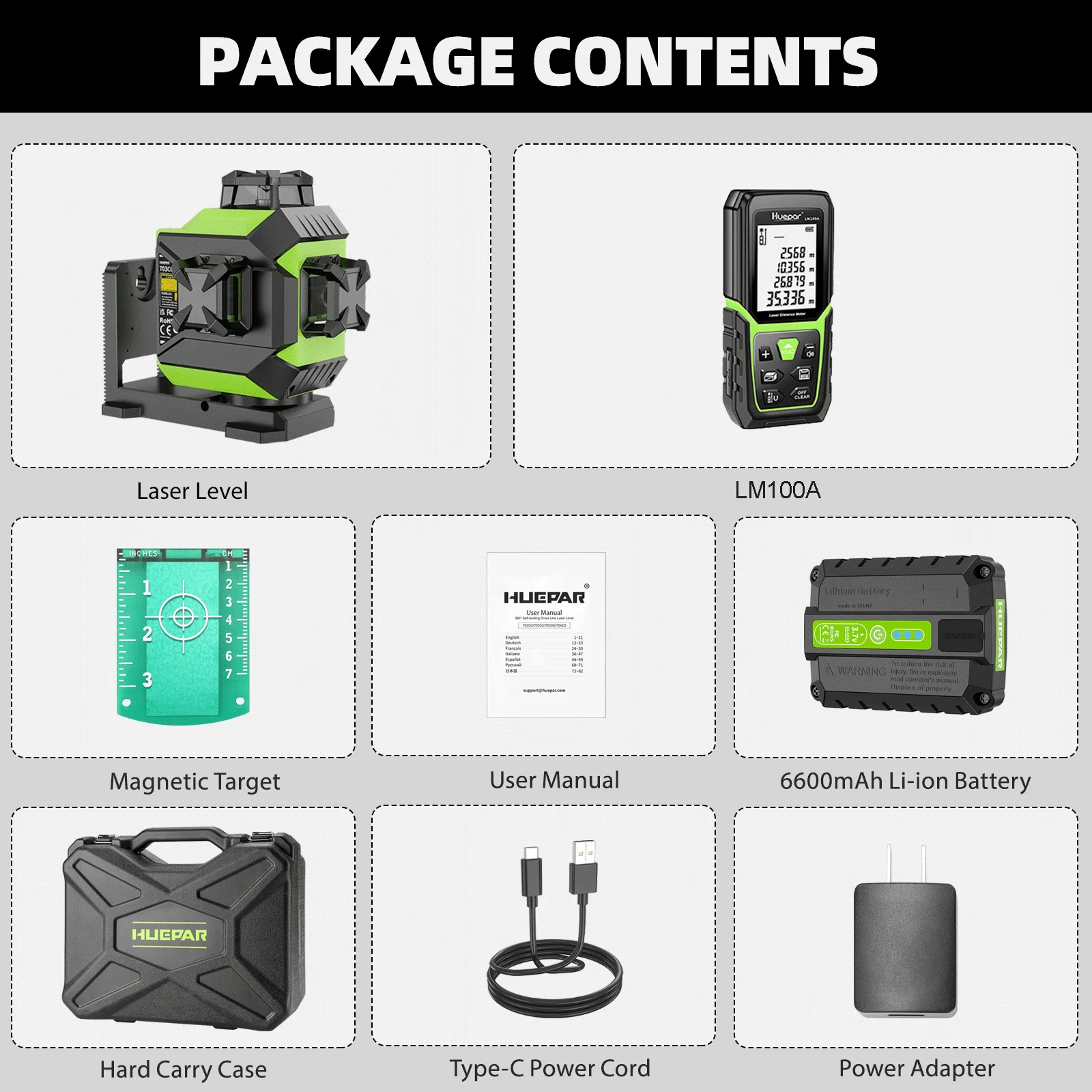 • It is compatible with Huepar LR-6RG / LR-5RG/ LR-8RG Line Laser Receiver (need to purchase separately) only.