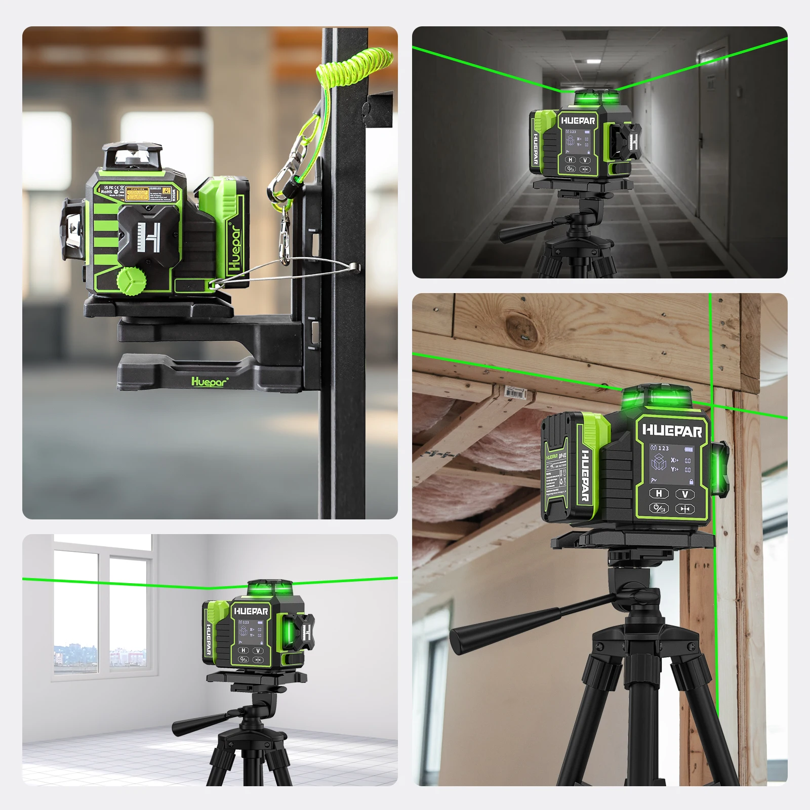 Huepar W03CG 3D 12 Lines Cross Laser Level Feature :
