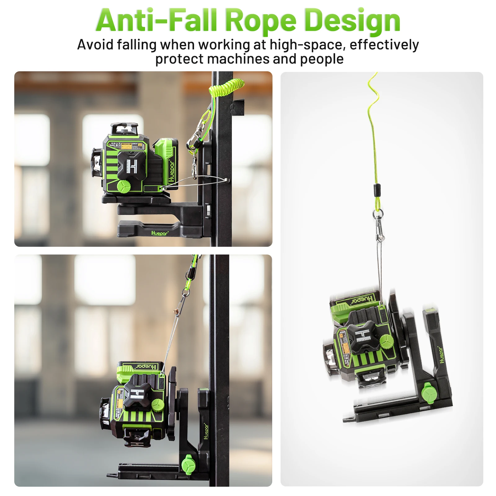 The Anti-fall rope avoid falling when working at high-space, effectively protect machines and people.Strong Magnetic Wall Bracket: Allows for attachment to metal track and steel.The laser offers 1/4"-20 and 5/8”-11 mounting thread to suit a standard tripod or pole mount.