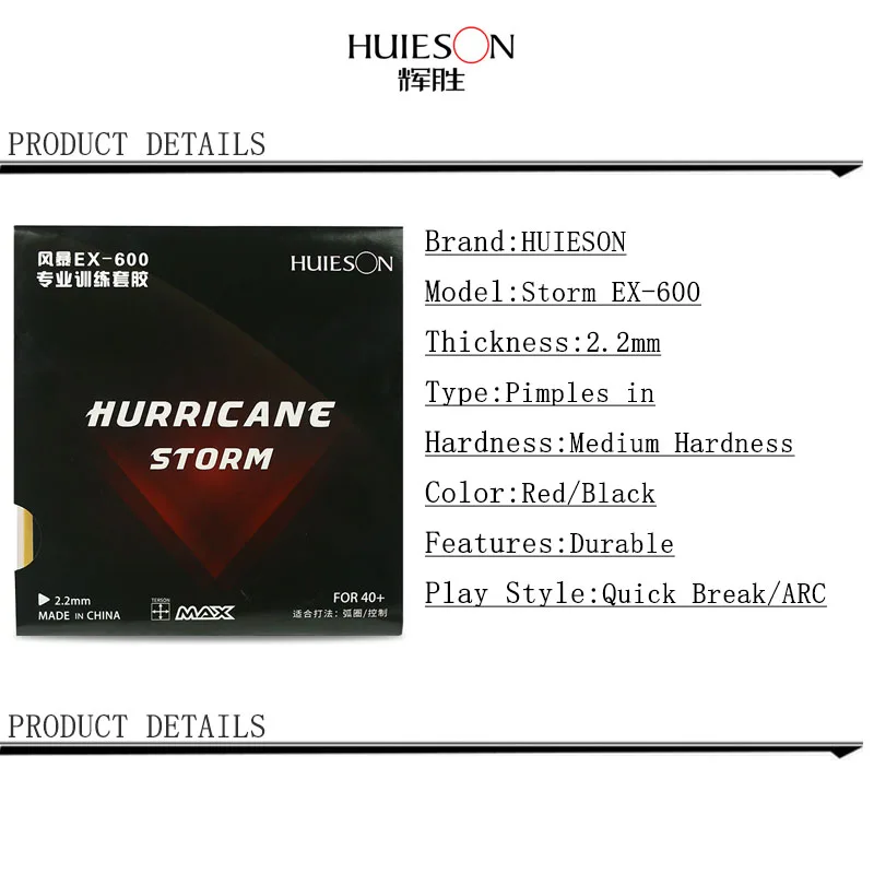 Huieson Hurricane Storm EX-600 Table Tennis Rubber, Pimples in 2.2mm, Fast Attack, Ping Pong