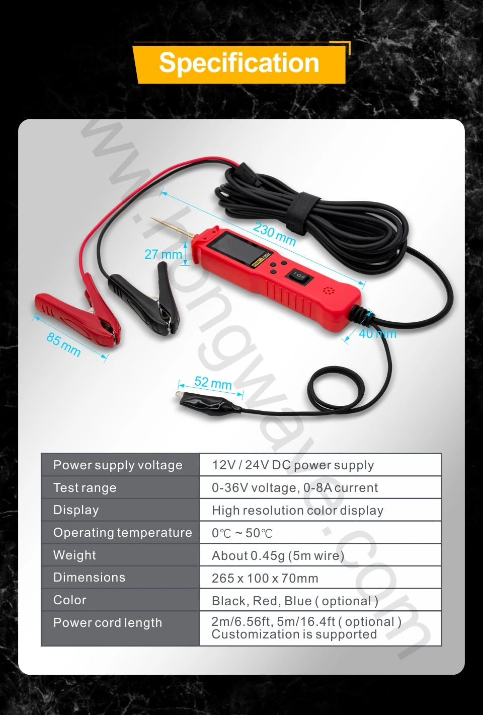Rugged and User-Friendly Design:Built to withstand the rigors of daily use in automotive environments. The compact and lightweight design makes it easy to carry and use in tight spaces. The intuitive button layout and clear digital display ensure effortless operation.