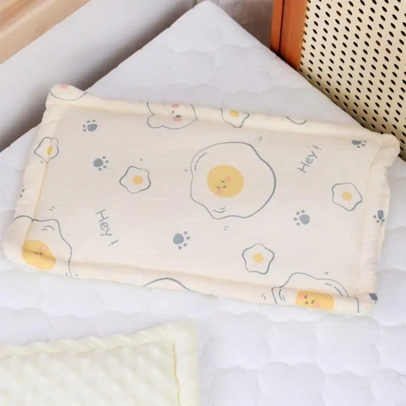 Our Baby Bedding Pillow features a double sided design for versatility. The outer layer is made of cotton gauze, offering a gentle and breathable feel, while the reverse side is plush cotton for added comfort.