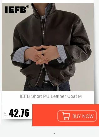 IEFB American Style Men’s Jackets Casual Pu Leather Drawstring Hooded Solid Color Loose Male Coats Personalized Autumn 9C7986