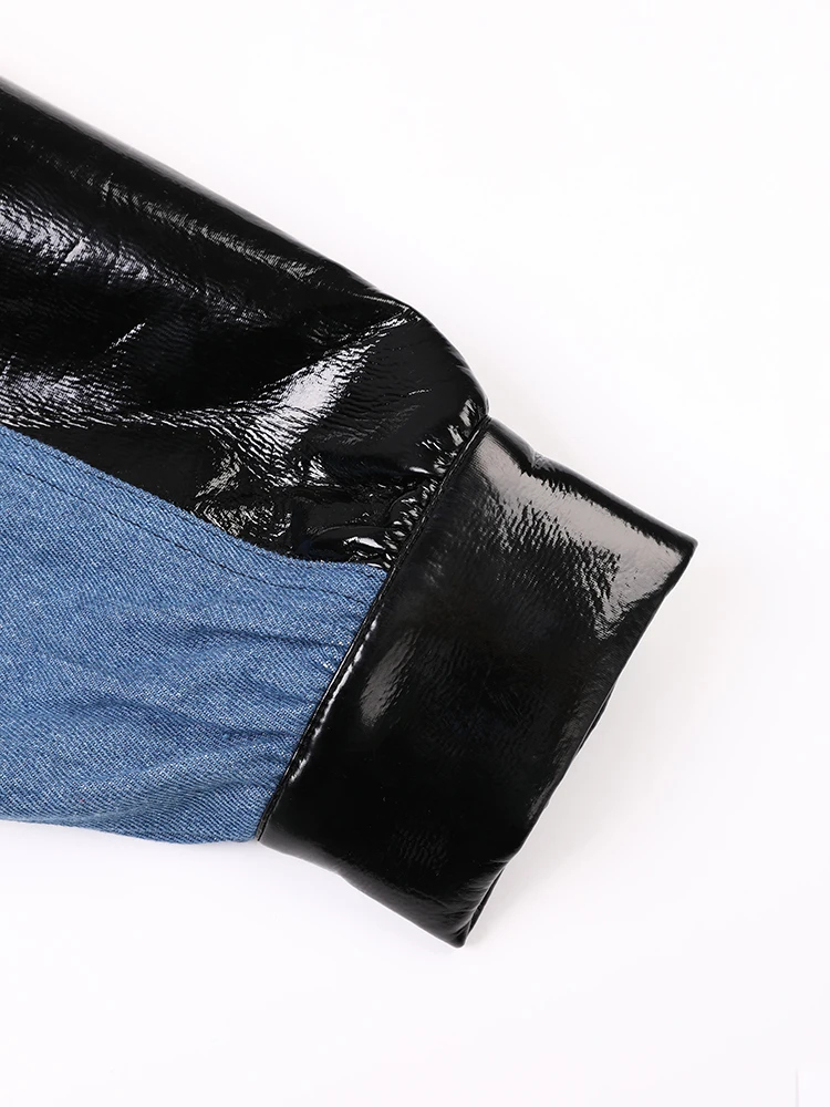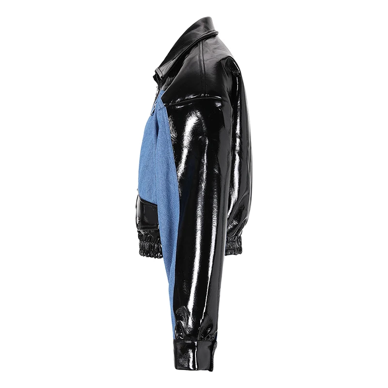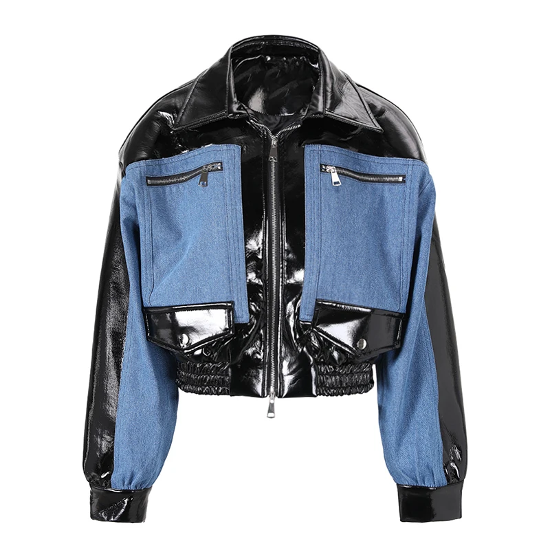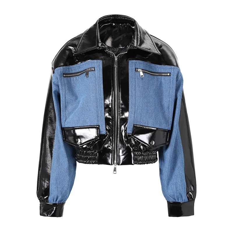 IEFB Denim Patchwork Leather Jackets Trend Men’s Fashion Silhouette Short Windbreake Korean Style Luxury Casual Pu Coat CPG0512