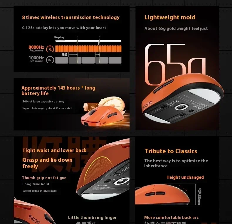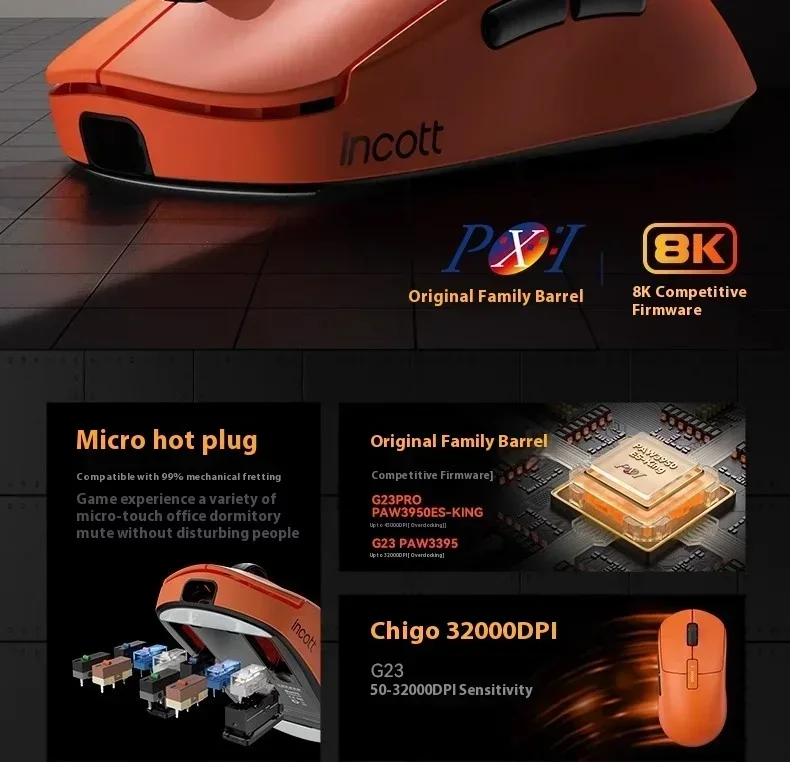 Incott G23 Pro Wireless Mouse 8k Hot Swap Dual Mode Paw3950 Custom Fast Chargr Gaming Mouse Ergonomics Pc Gamer Accessories Gif