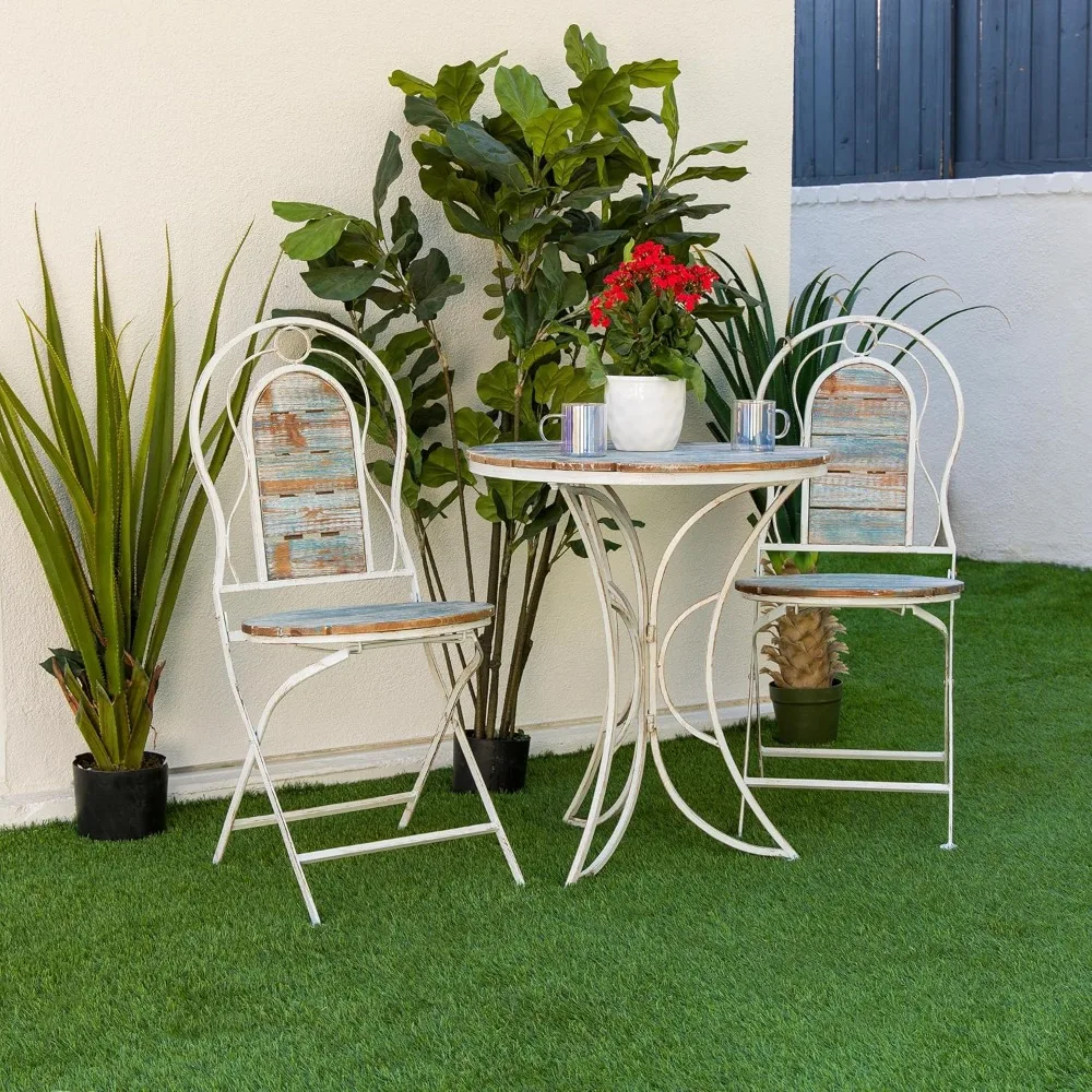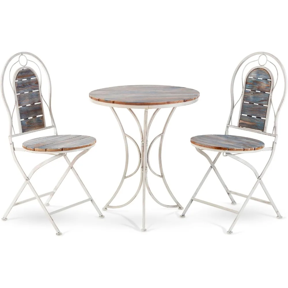 Indoor/Outdoor 3-Piece Wood and Metal Bistro Set Table and Folding Chairs Patio Seating