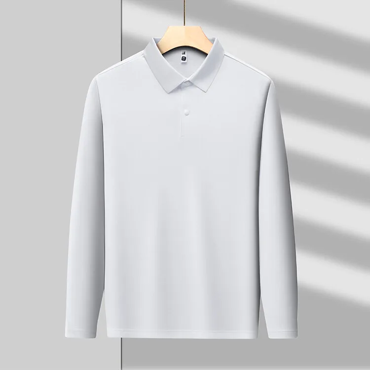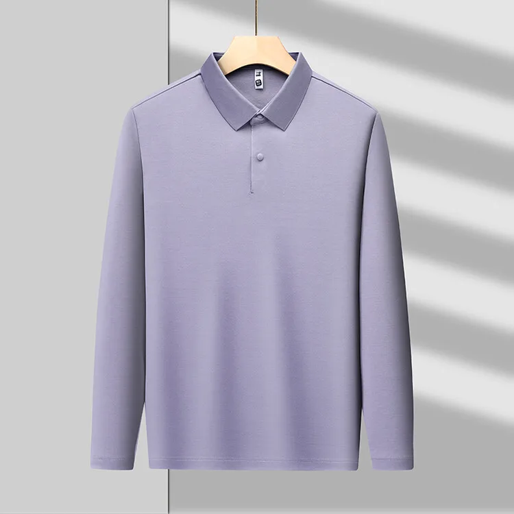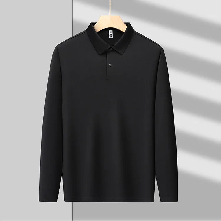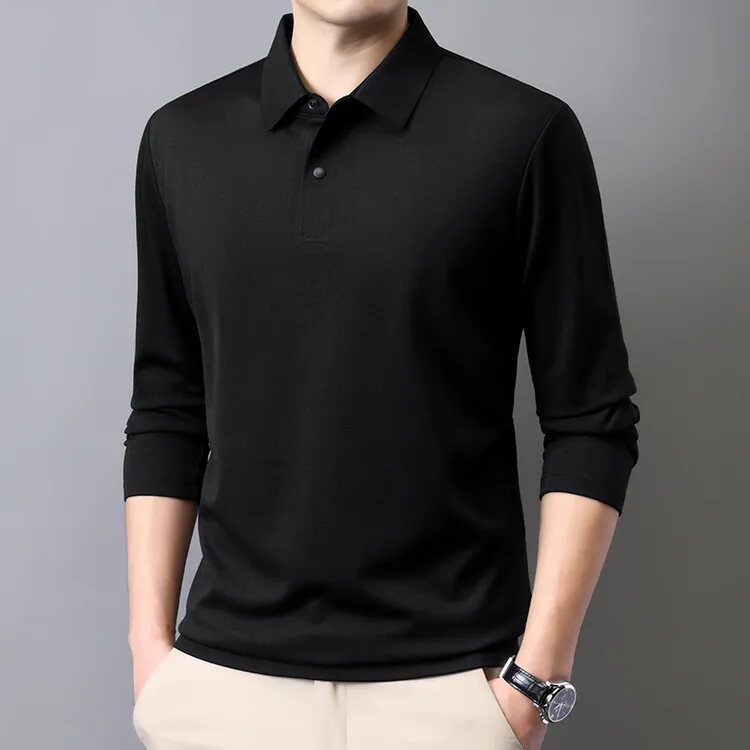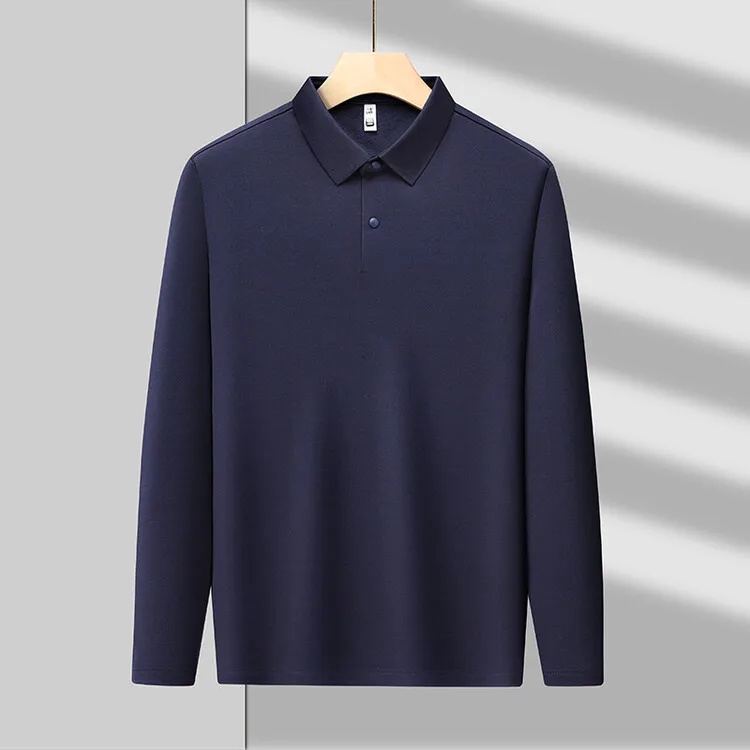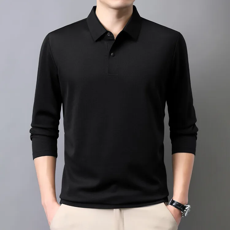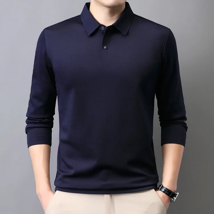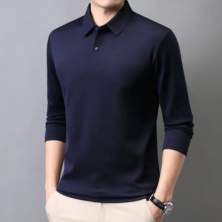 Inner Brushed Men’s Long-Sleeved Polo, New Autumn Golf T-shirt, Luxury Goods, Business Casual Top Plus Size Wool Mulberry Silk