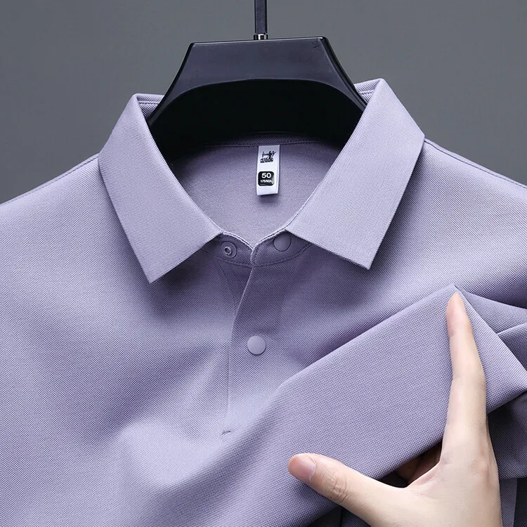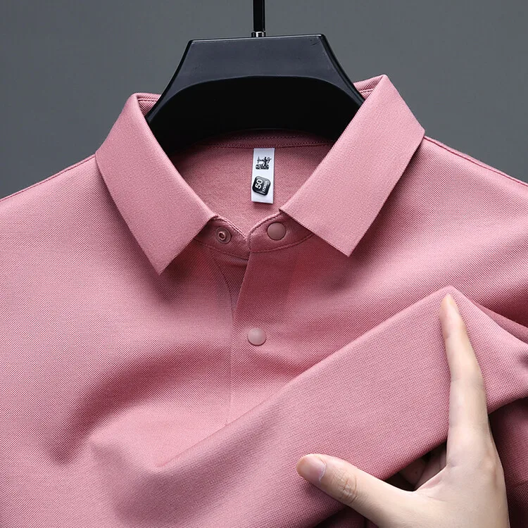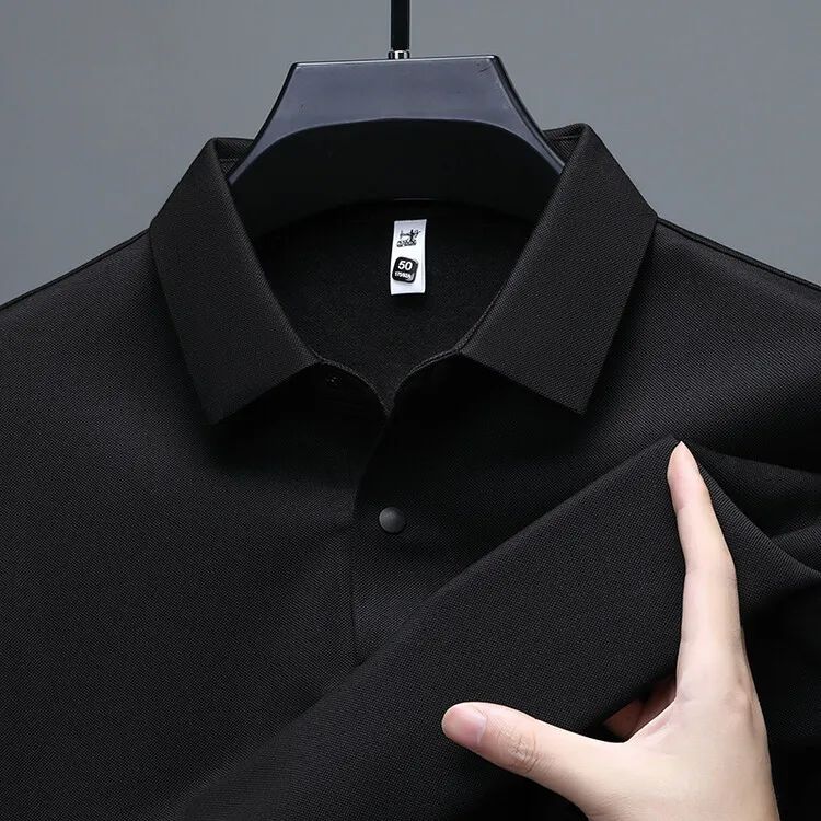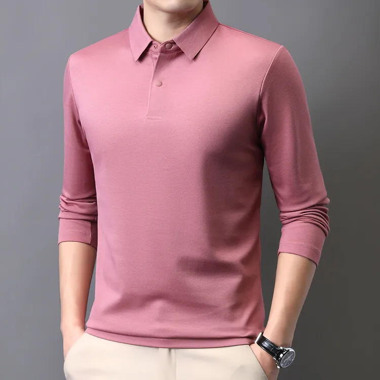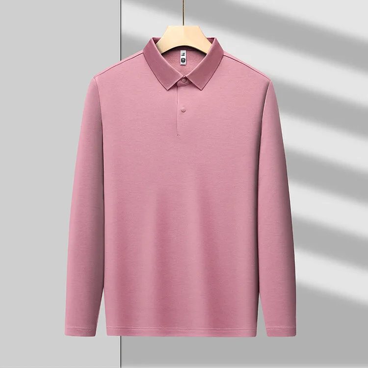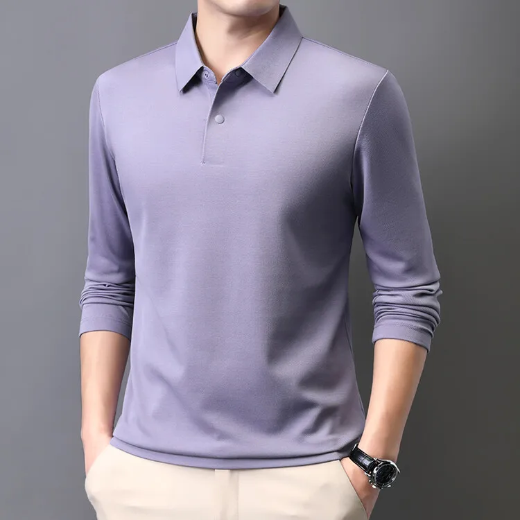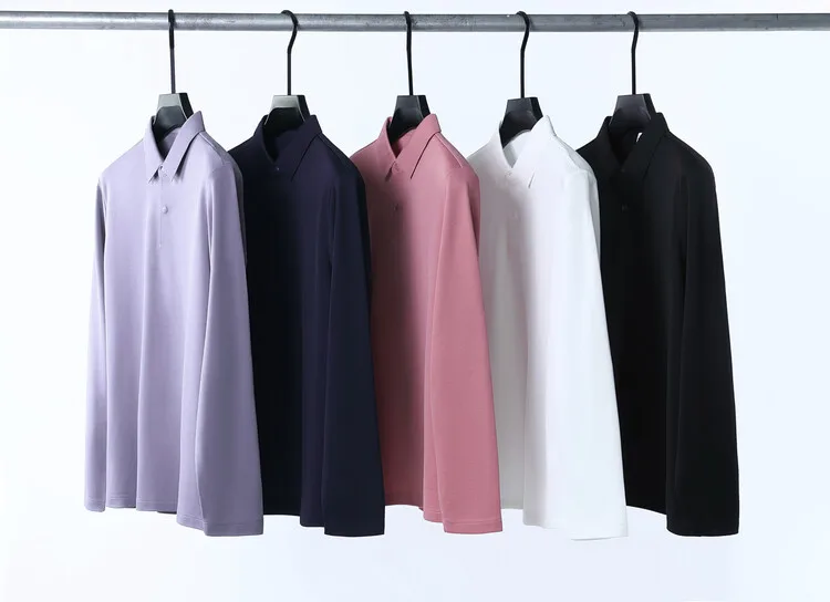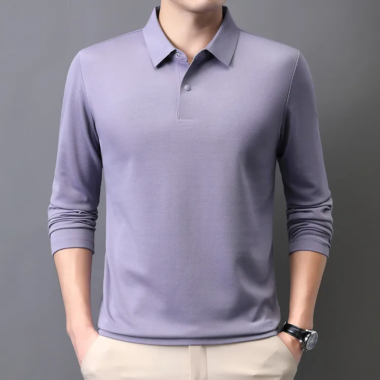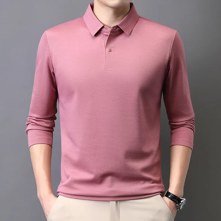 Inner Brushed Men’s Long-Sleeved Polo, New Autumn Golf T-shirt, Luxury Goods, Business Casual Top Plus Size Wool Mulberry Silk