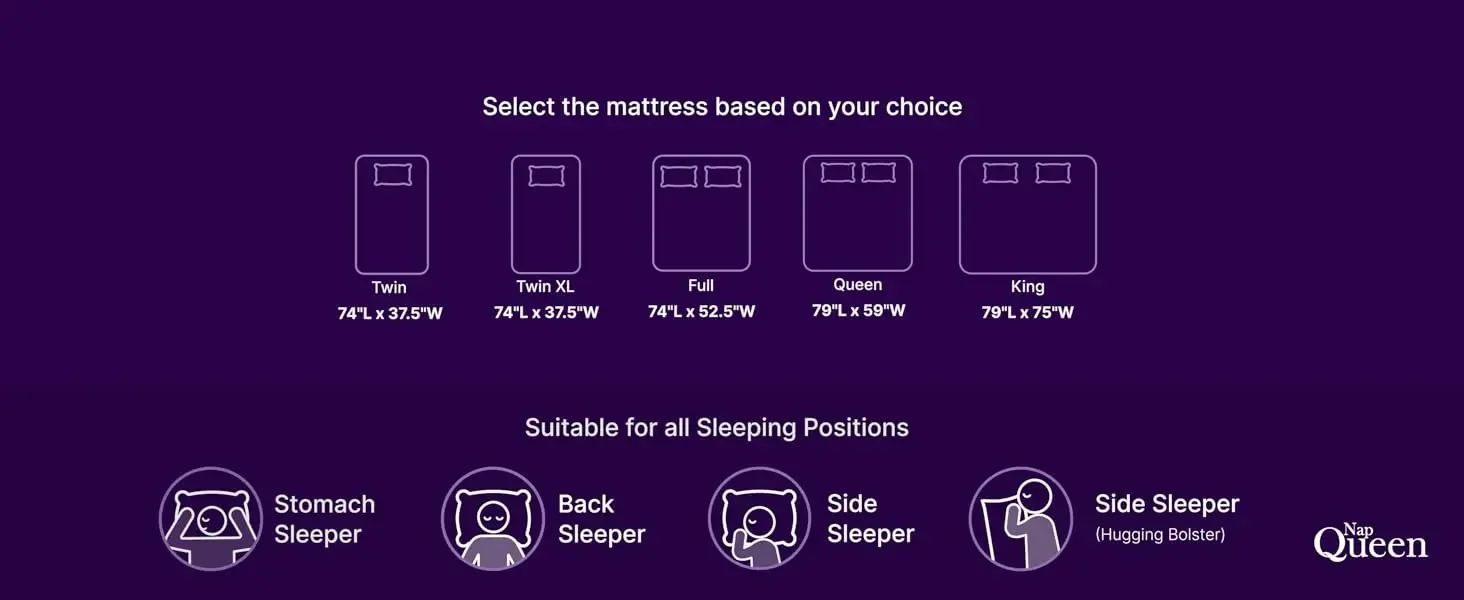 NapQueen tackles sleep issues with products from king mattresses to 4-inch toppers, addressing discomfort, alignment, and temperature. Easy setup for all sizes, ensuring refreshing sleep every night.