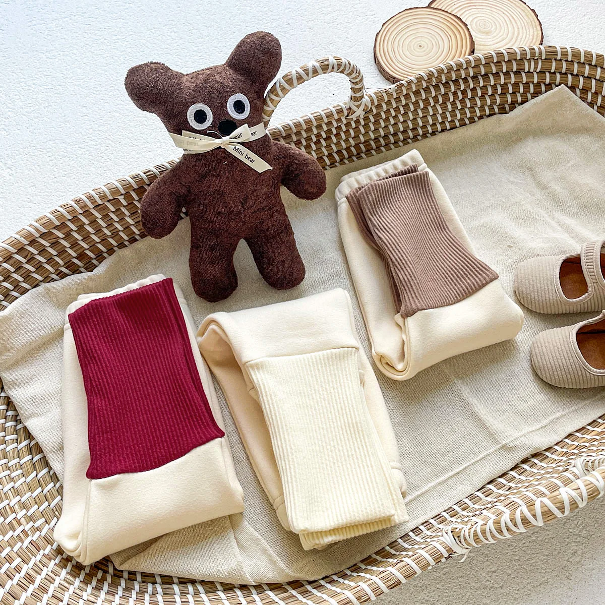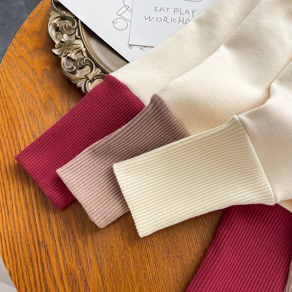 Ins Children’s fleece-lined Leggings Warm Korean Style Stitching One-piece Velvet Autumn and Winter All-match Trousers for Baby