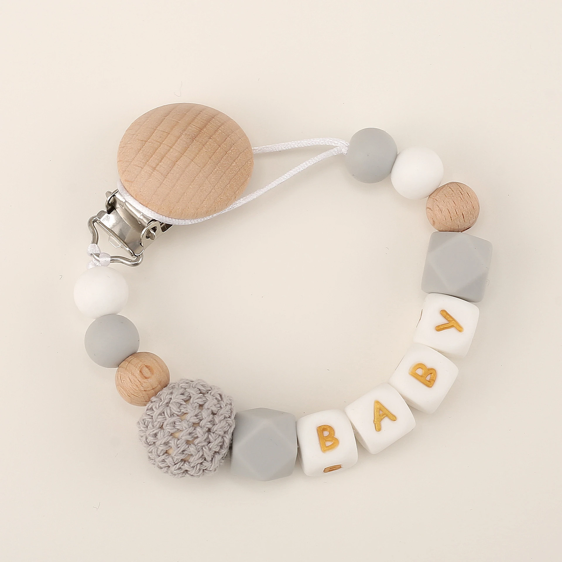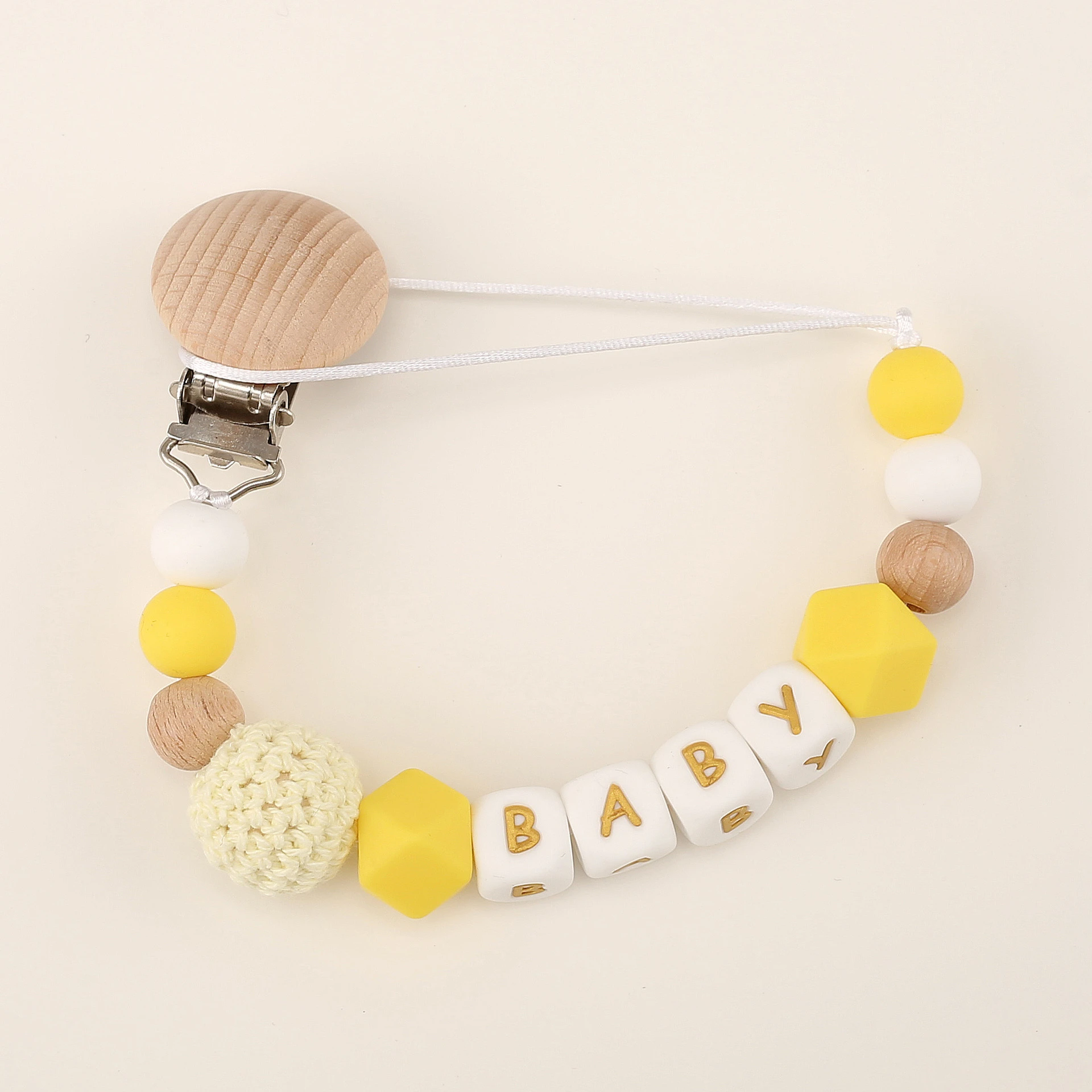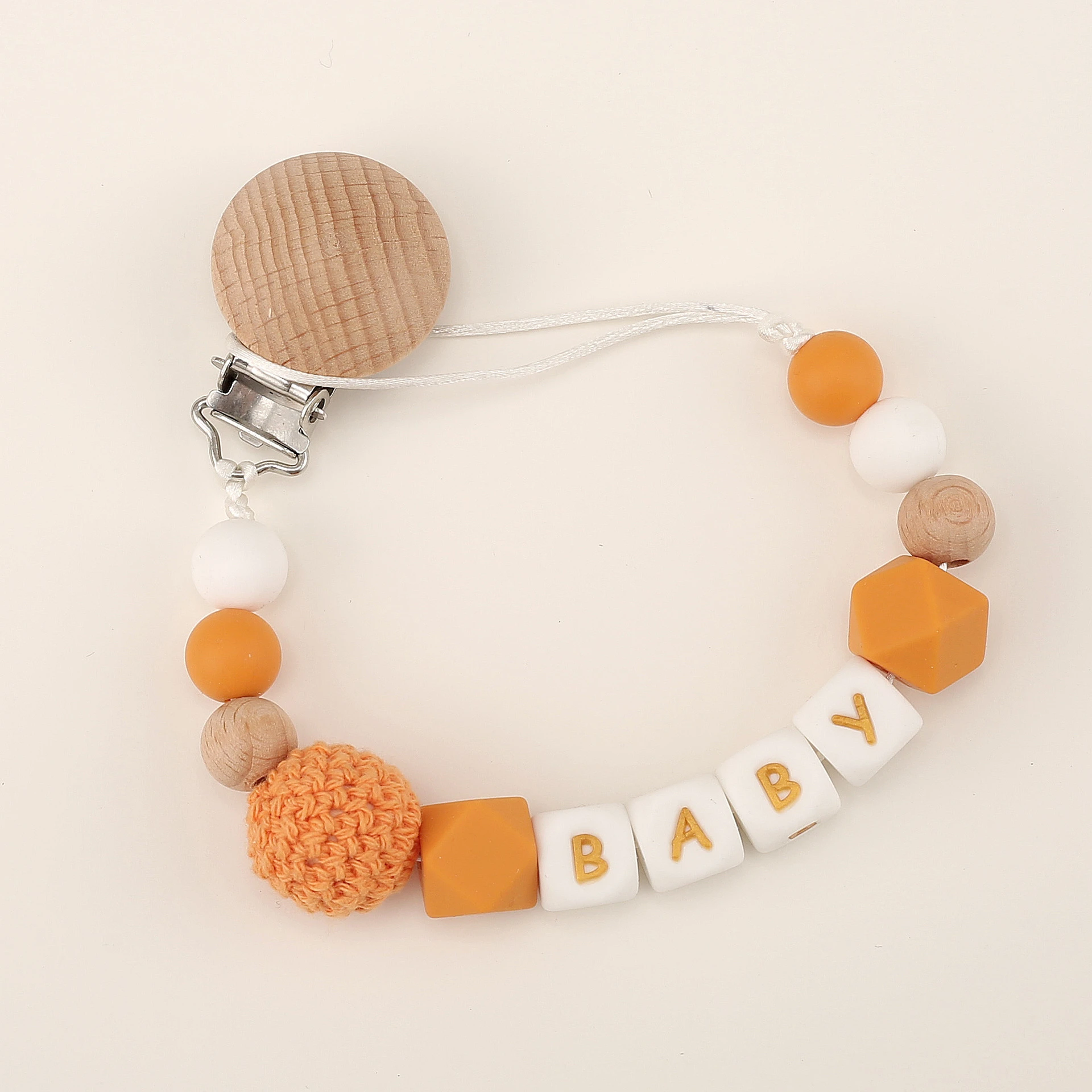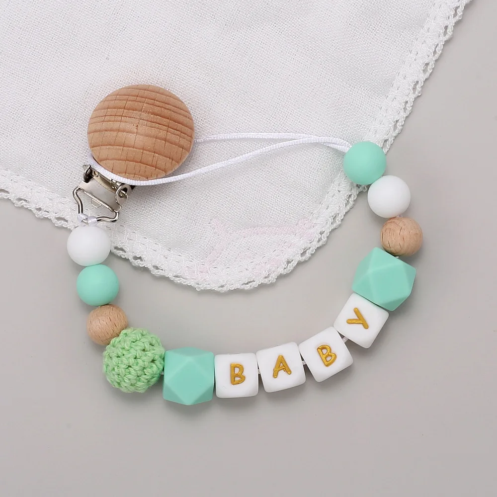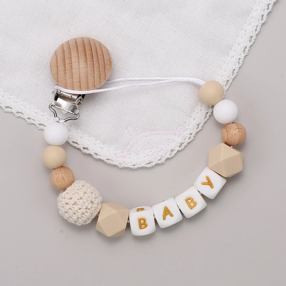 INS Personalized Name Baby Pacifiers Clips BPA Free Silicone Letter Gold Dummy Nipple Holder Clip Chain Teething Toy Accessories
