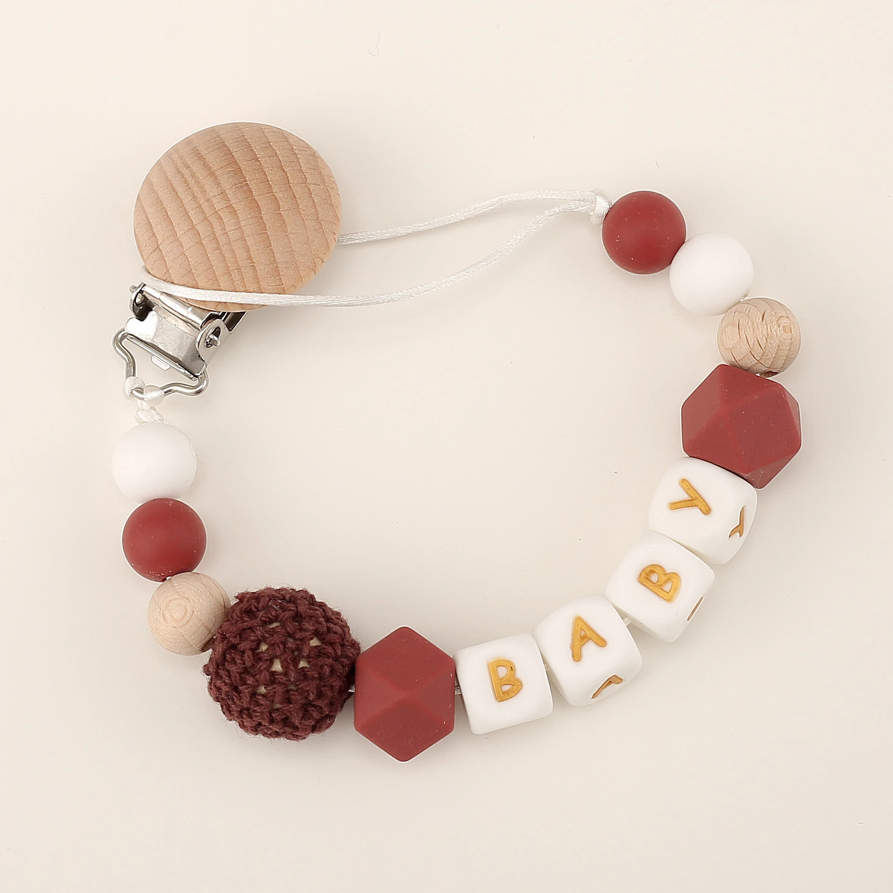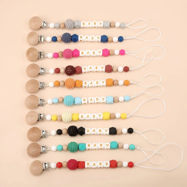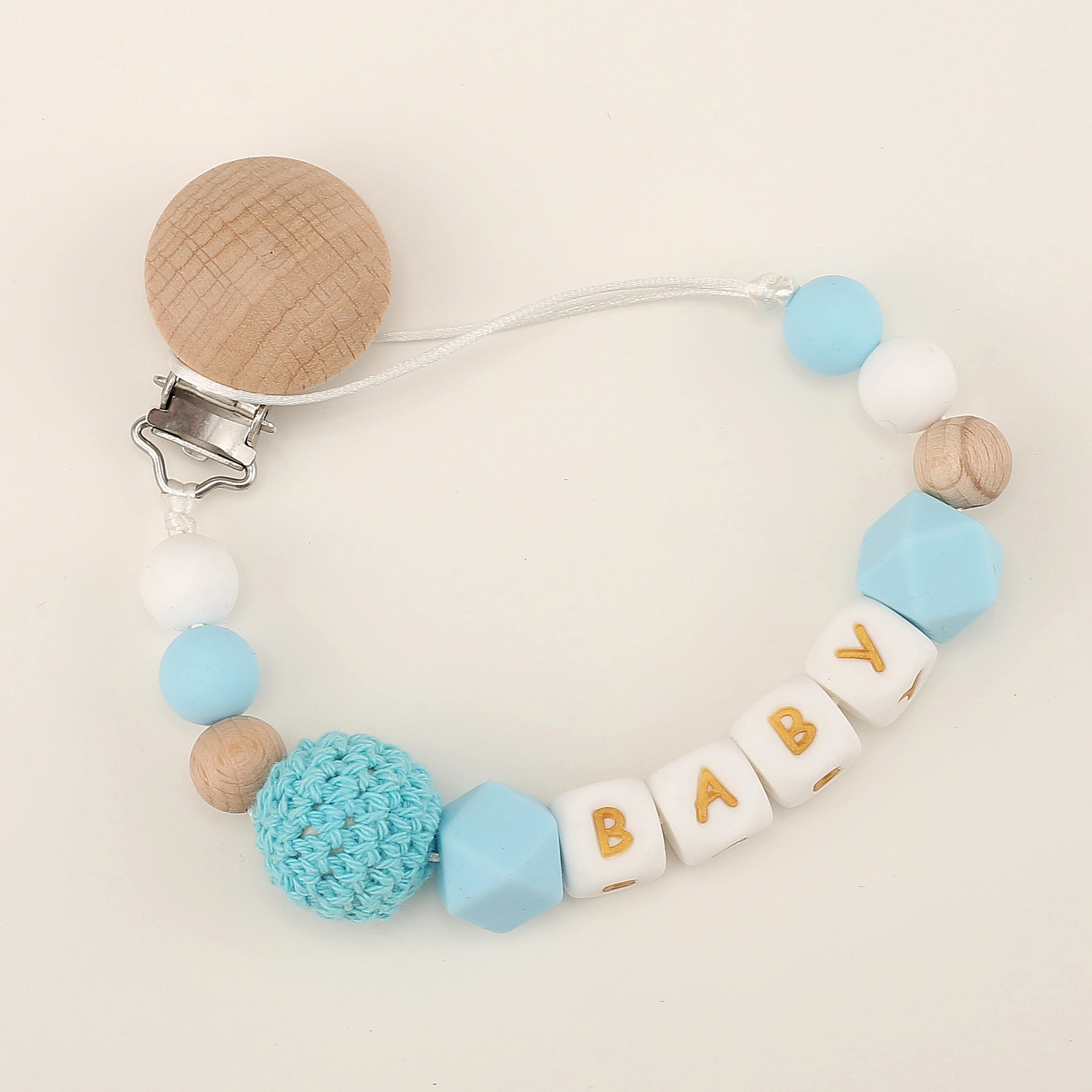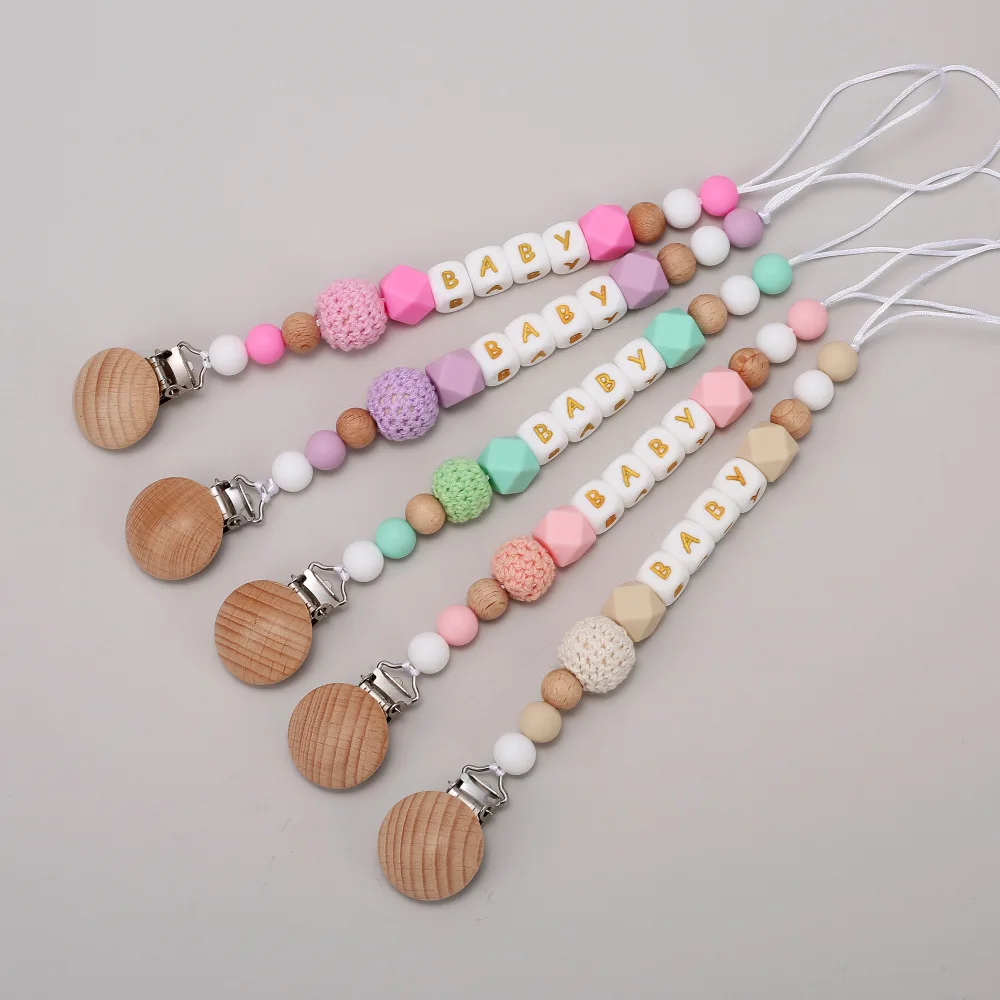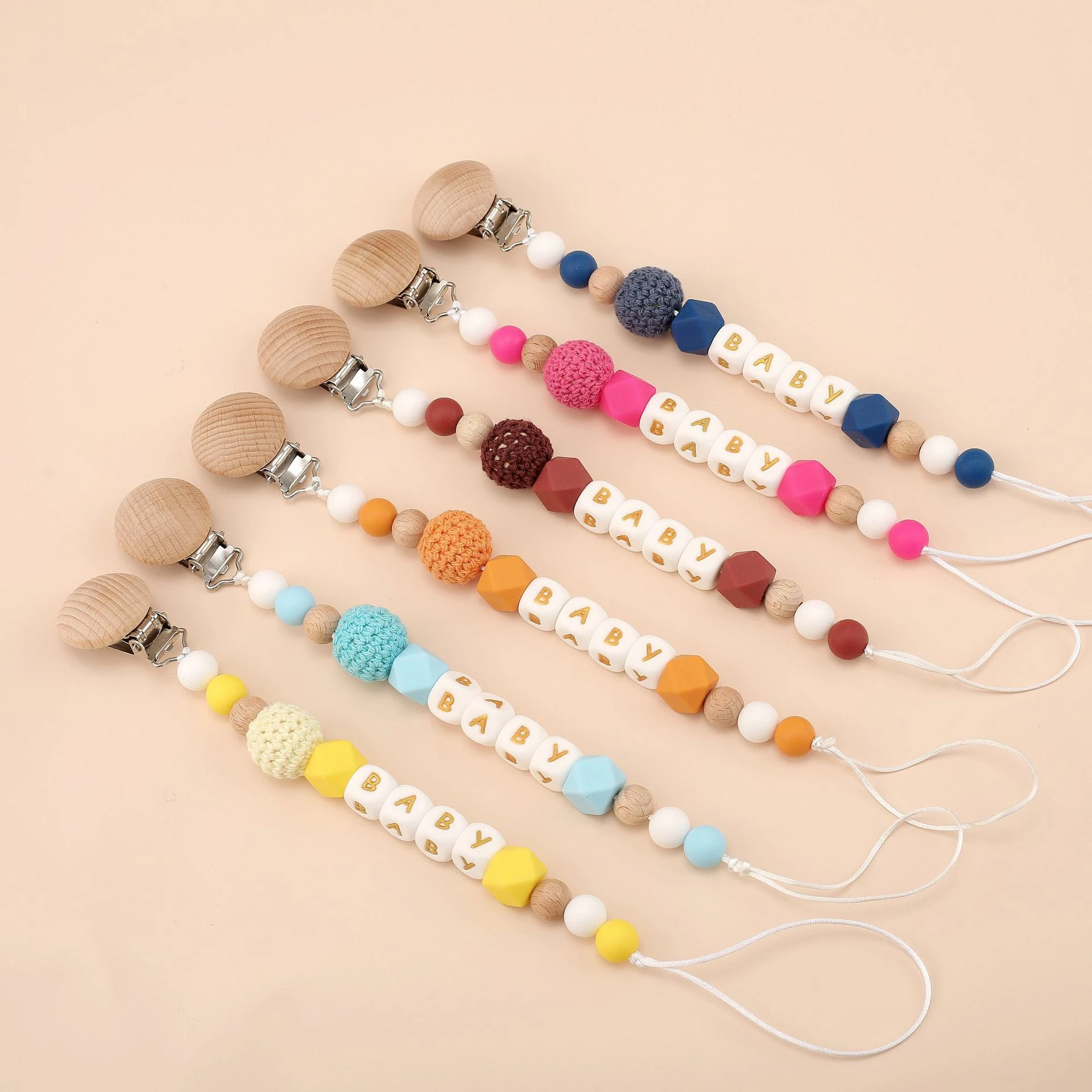 INS Personalized Name Baby Pacifiers Clips BPA Free Silicone Letter Gold Dummy Nipple Holder Clip Chain Teething Toy Accessories