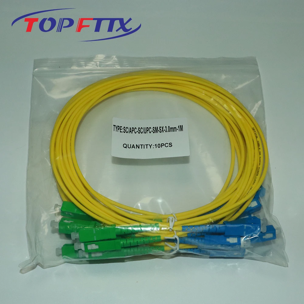 Inventory Cleaning 50 PCS 1 Meter Length SC/APC UPC Fiber Optic Patch Cord Single Mode OS2 Simplex 2.0mm With Yellow PVC Jacket