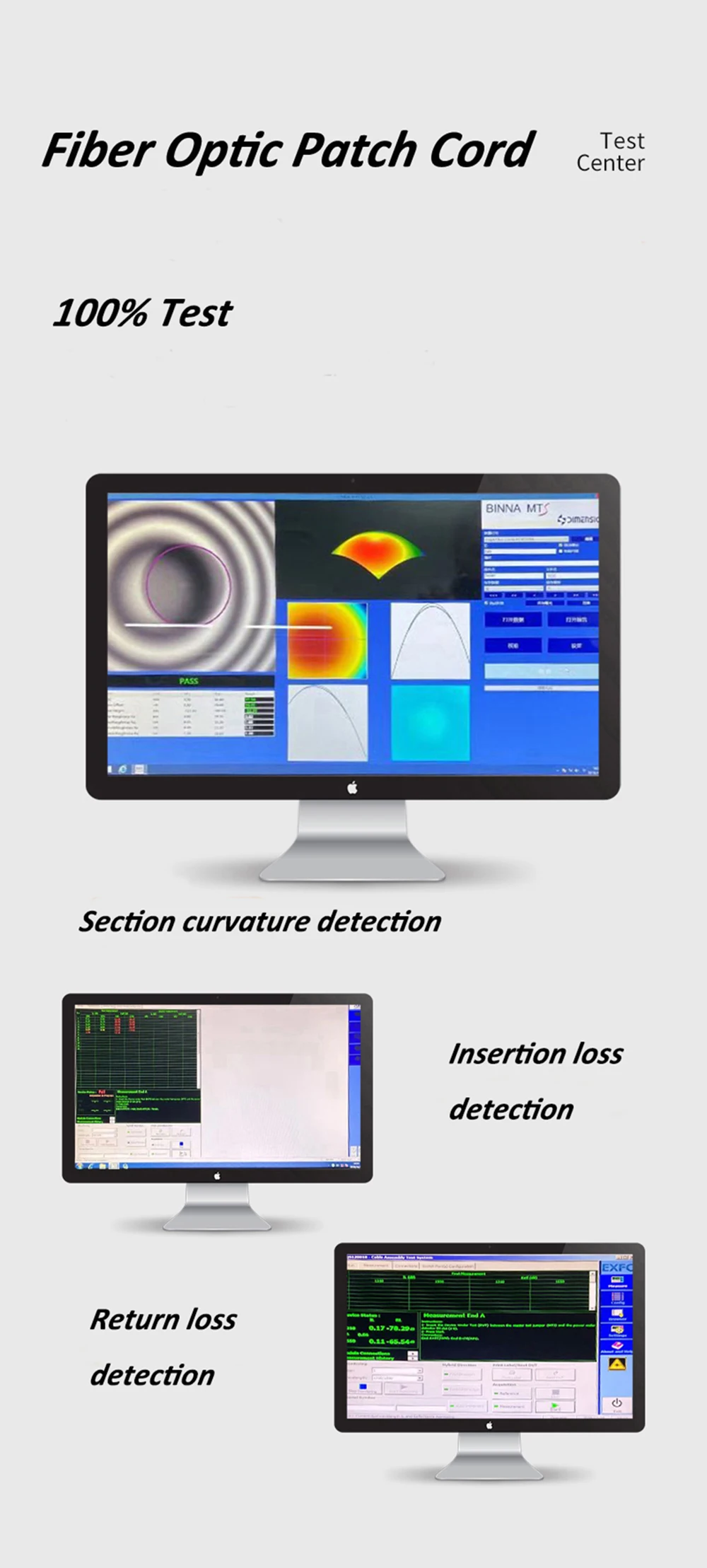 10) Test: Use an insertion return loss tester to measure the main data of the fiber head, insertion loss and return loss. Generally, the single-mode insertion loss is required to be less than or equal to 0.3dB, and the return loss is greater than or equal to 50dB. Optical fiber jumpers with higher requirements are 3D interference testing is required (the main three data are vertex offset, radius of curvature, and fiber height).