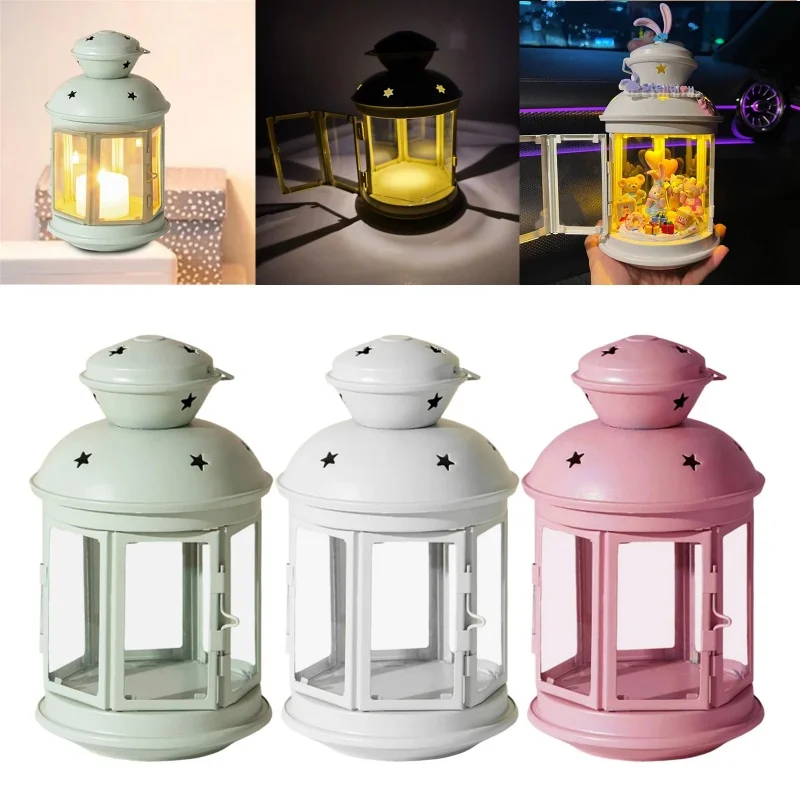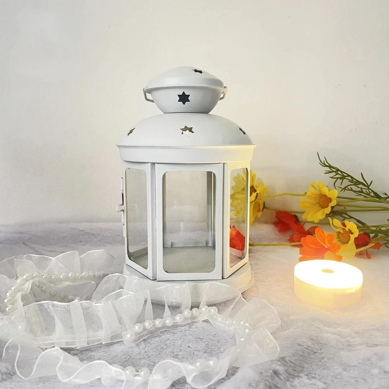 Iron Candle Holder European Candlestick Iron Star Pendant Lantern Candle Holder Vintage French Moroccan Home Bedroom Party Decor