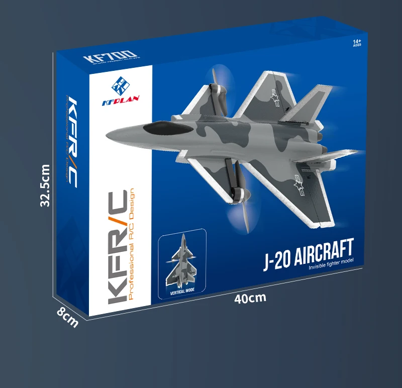 J20 RC Plane 2.4G 6CH KF700 Combat Aircraft With Brushless Motor One Key Acrobatic Fixed Wing Fighter Model For Boy Gift