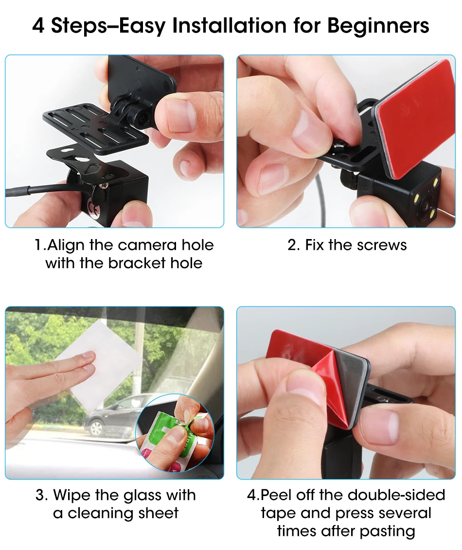 1, Align the camera hole with the bracket hole