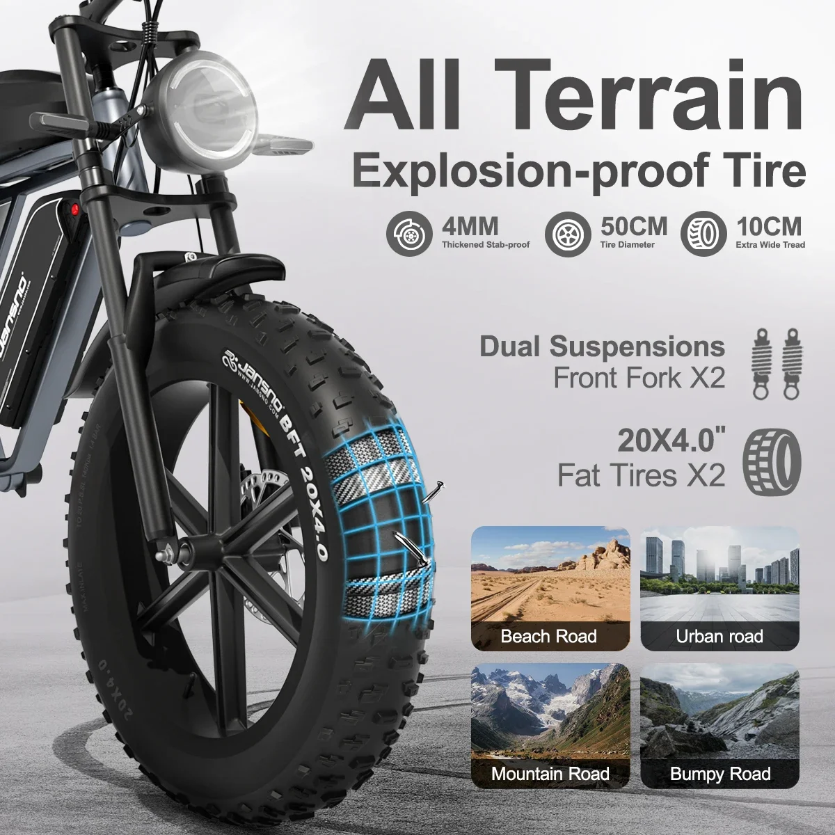 Jansno x70 20Inch Fat Tire Electric Bicycle 750W 48V 34A Dual Battery 30MPH 80km/120km city Commuter Electric Bike for Adults