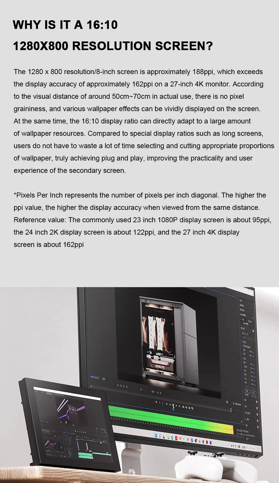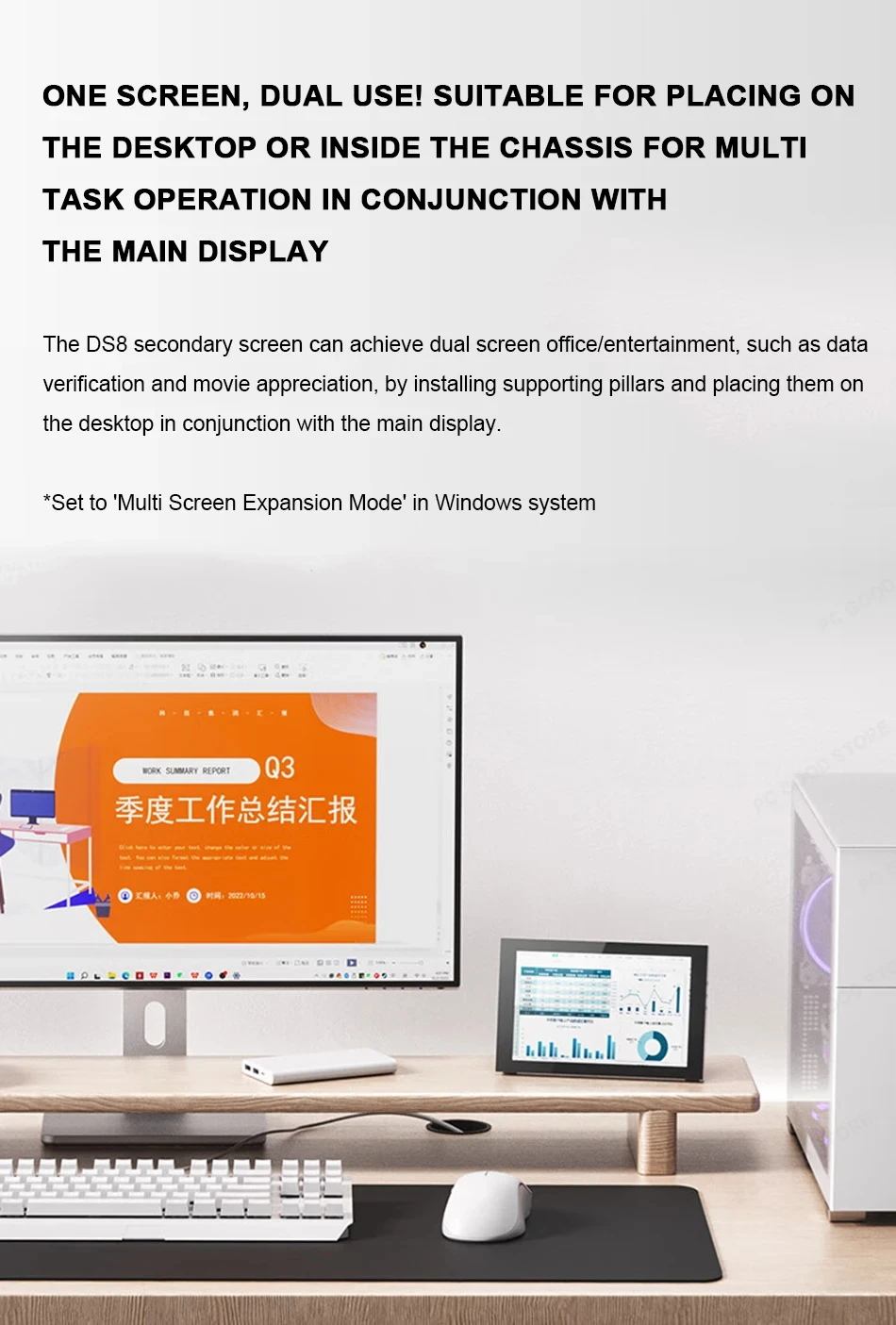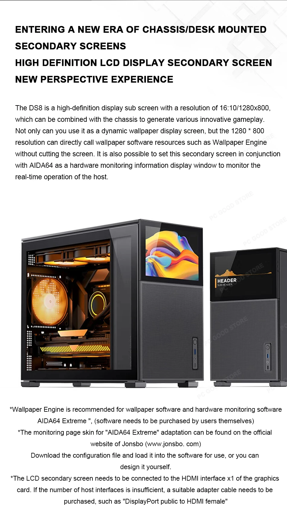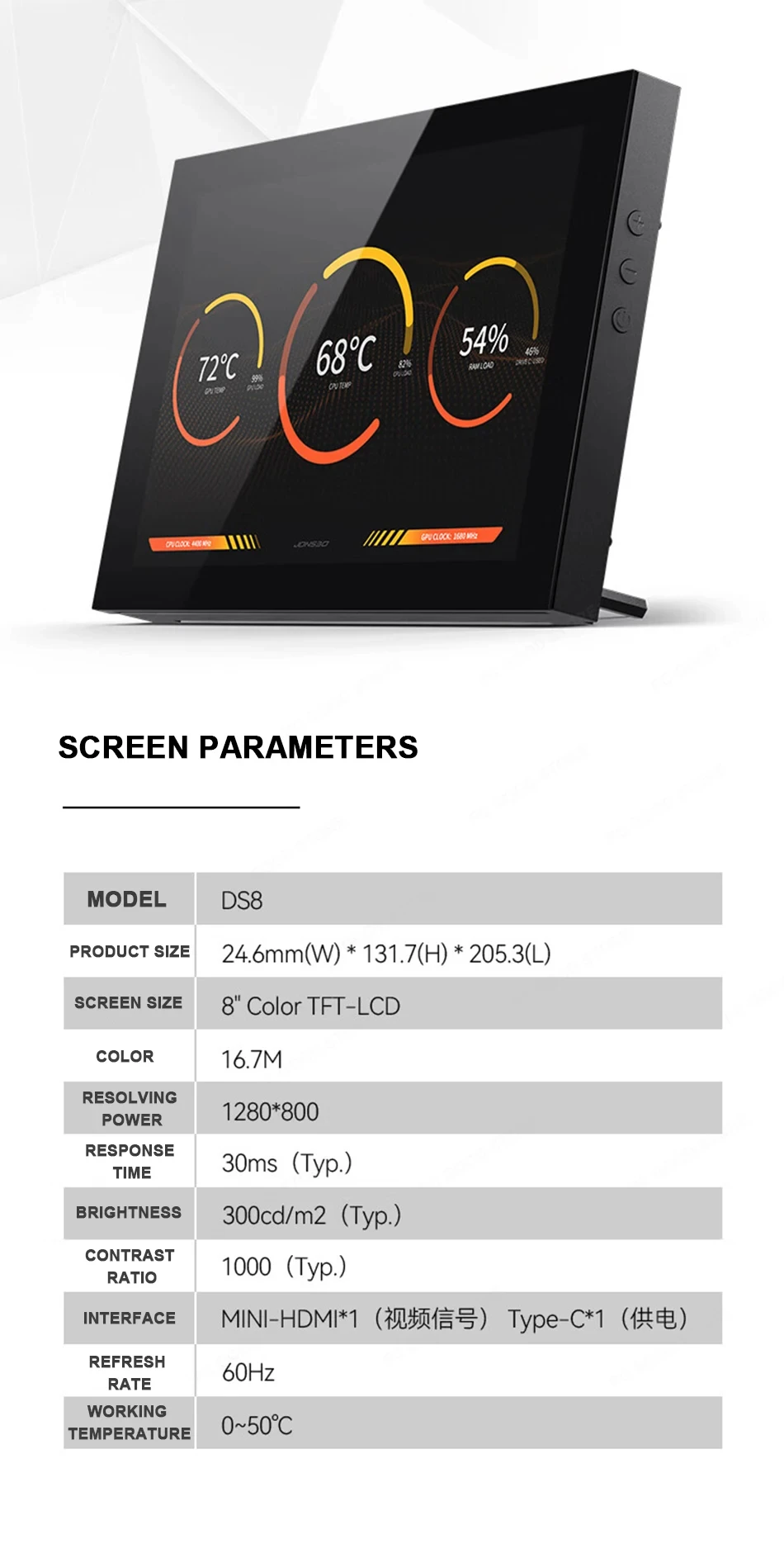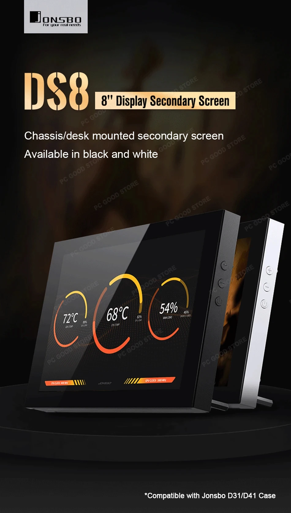 JONSBO DS8 chassis secondary screen black/white, 8-inch 16:10, same brand D31/D41 chassis external desktop screen