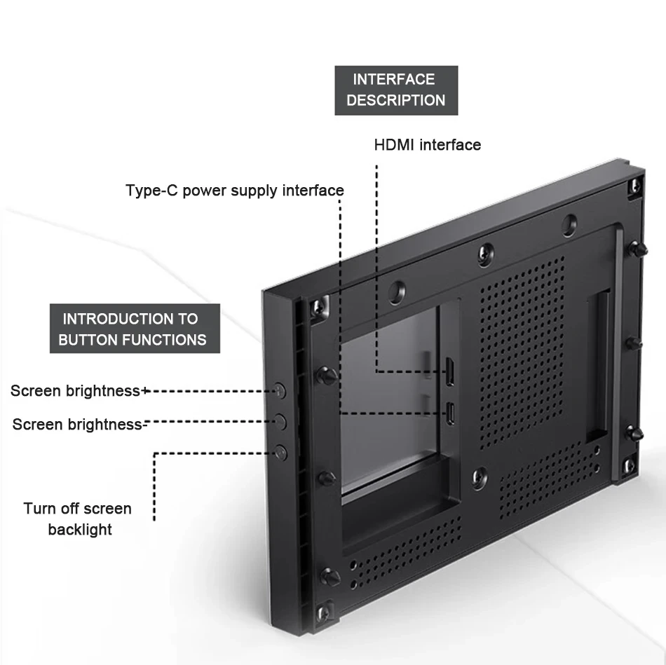 Interface: MINI-HDMI * 1 (video signal) Type-C * 1 (power supply)
