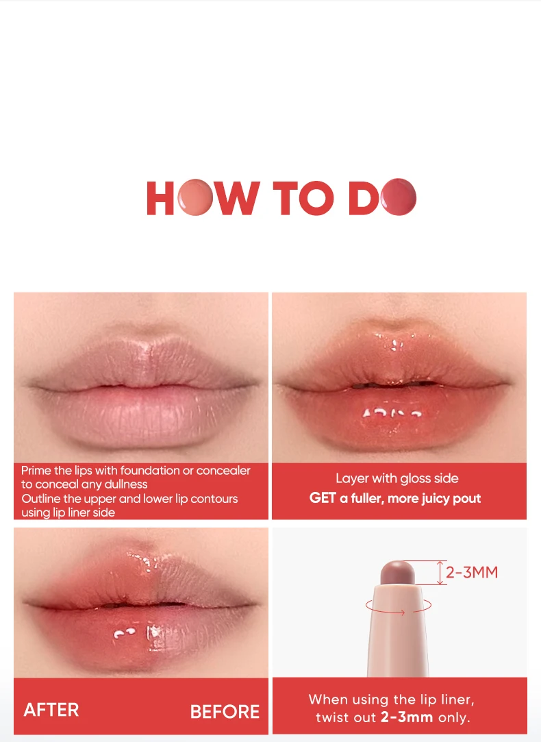 Judydoll Double-Ended Lip Gloss Lip Liner Two-In-One Mirror Water Gloss Lip Glaze