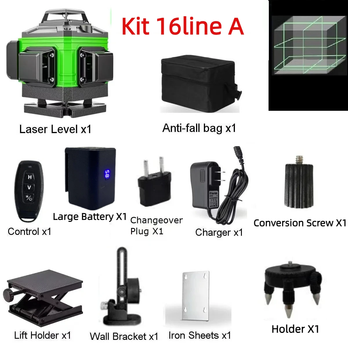 Jumbo battery 4D 16Lines Green Light High-precision Self-leveling 360 Horizontal Stick To The Wall Laser Level Instrument