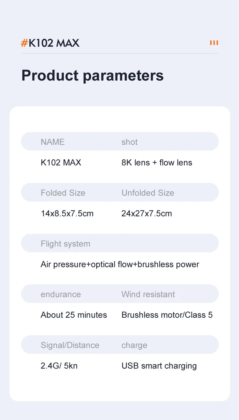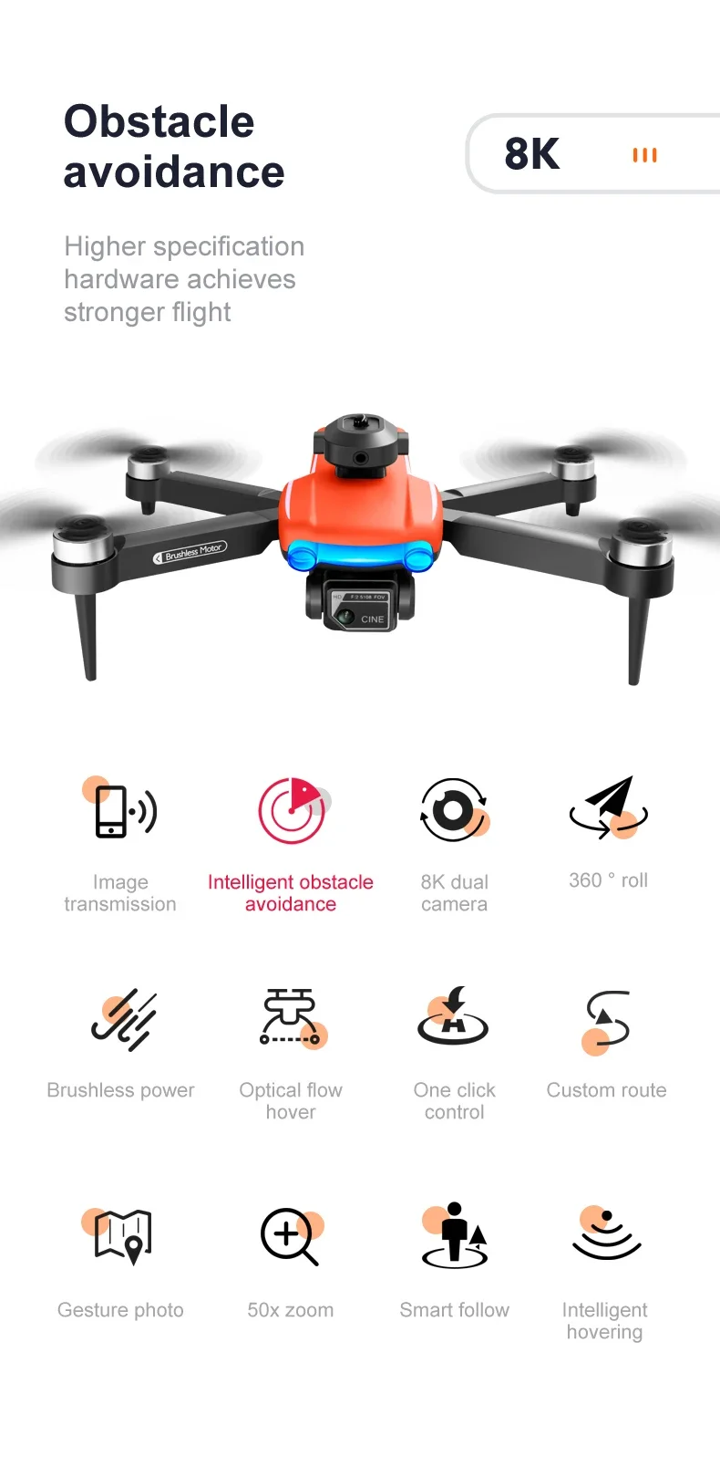 Product configuration parameters: 8K dual camera / optical flow positioning