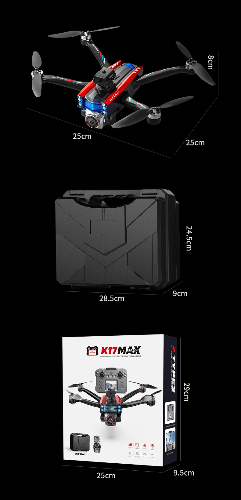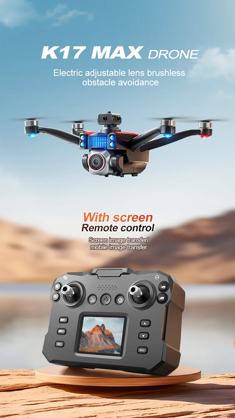K17 Drone 8K Professinal With Screen HD Camera Obstacle Avoidance Brushless Motor RC Optical Flow Quadcopter Toys For Kids Gifts