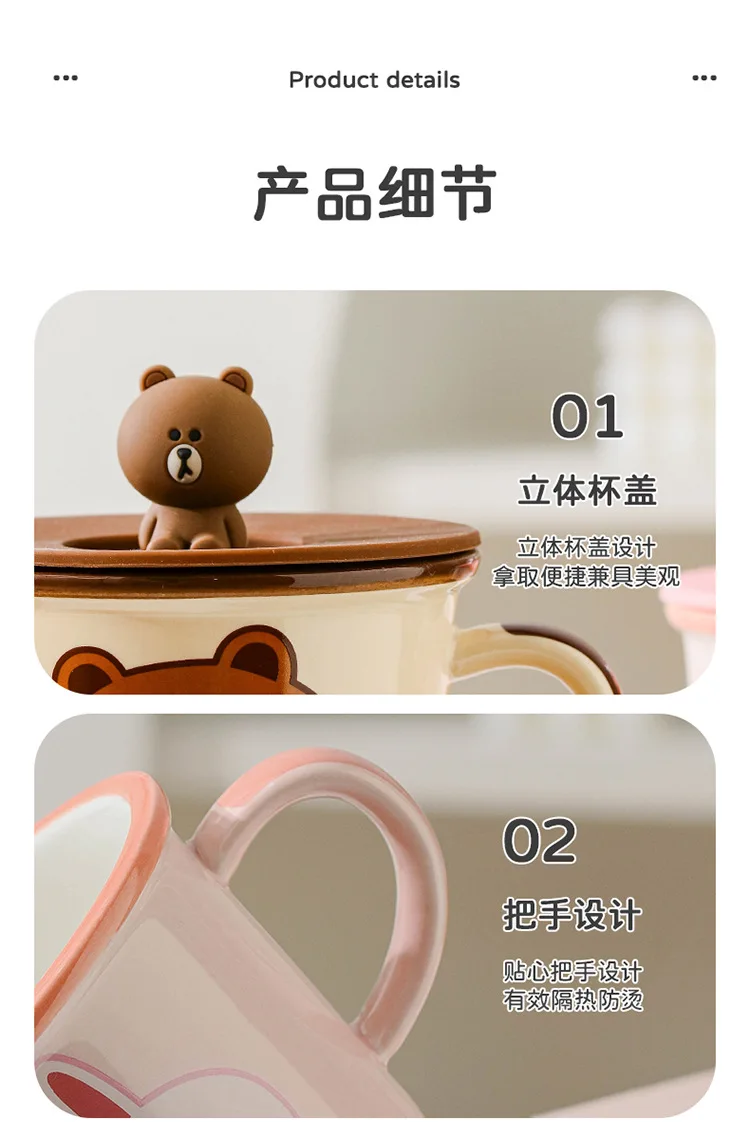 Kawaii Line Friends Mugs Cartoon Brown Doll Girl Ceramics Scale Handle Cups Cute Cony Couple Coffee Cup Gift Child Milk Cup