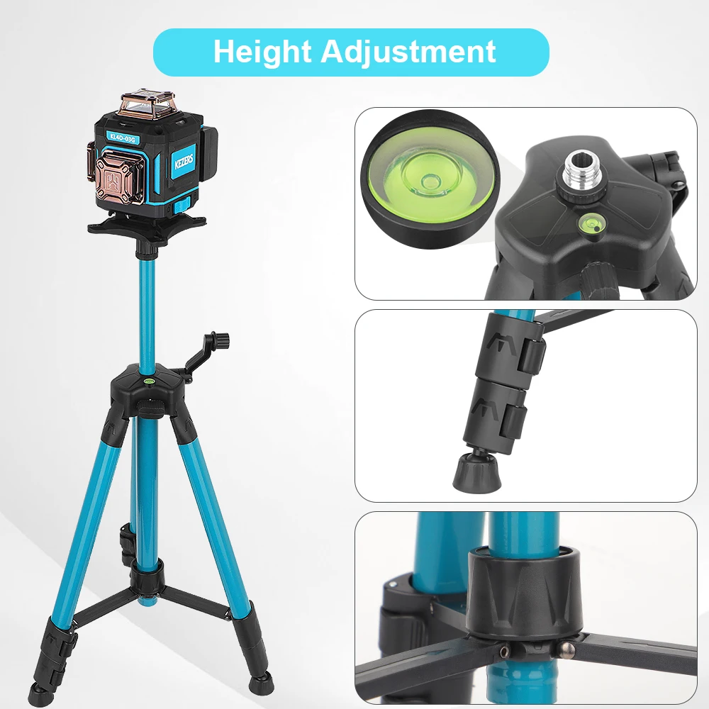 KEZERS Display Green Laser Level 16 Lines 4D 360 KL4D-03G 4000mAh Li-ion Battery With 1m Tripod Remote Control Suitcase