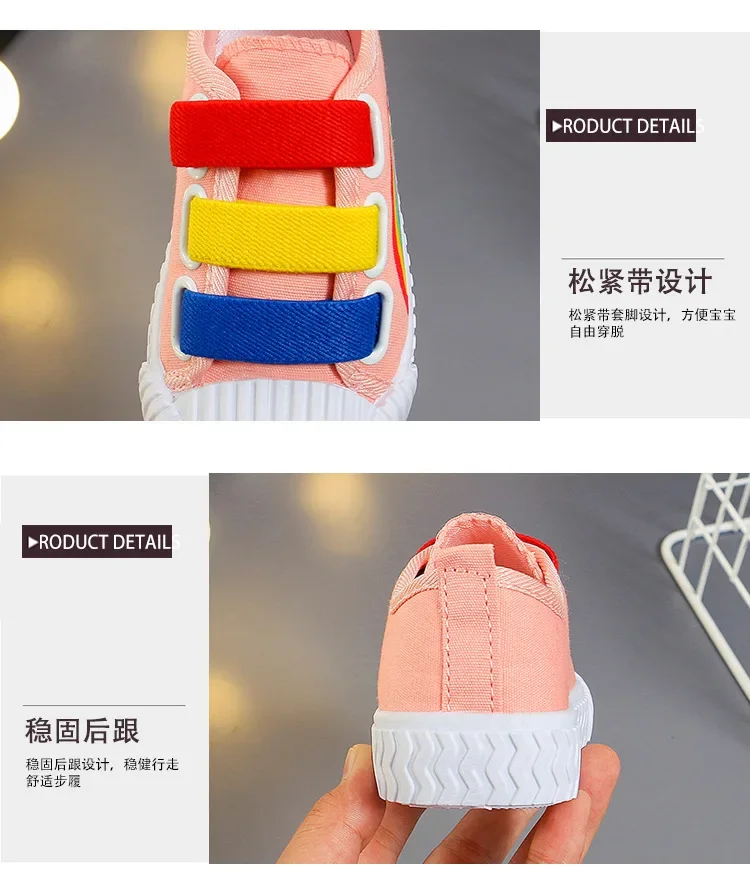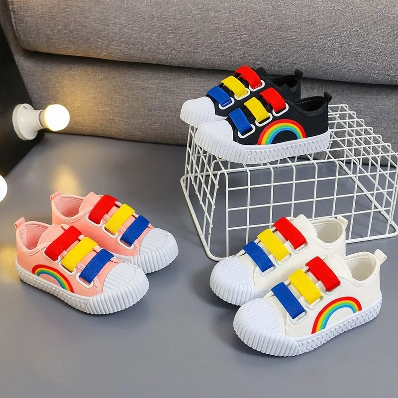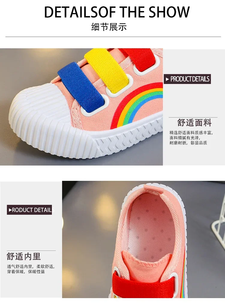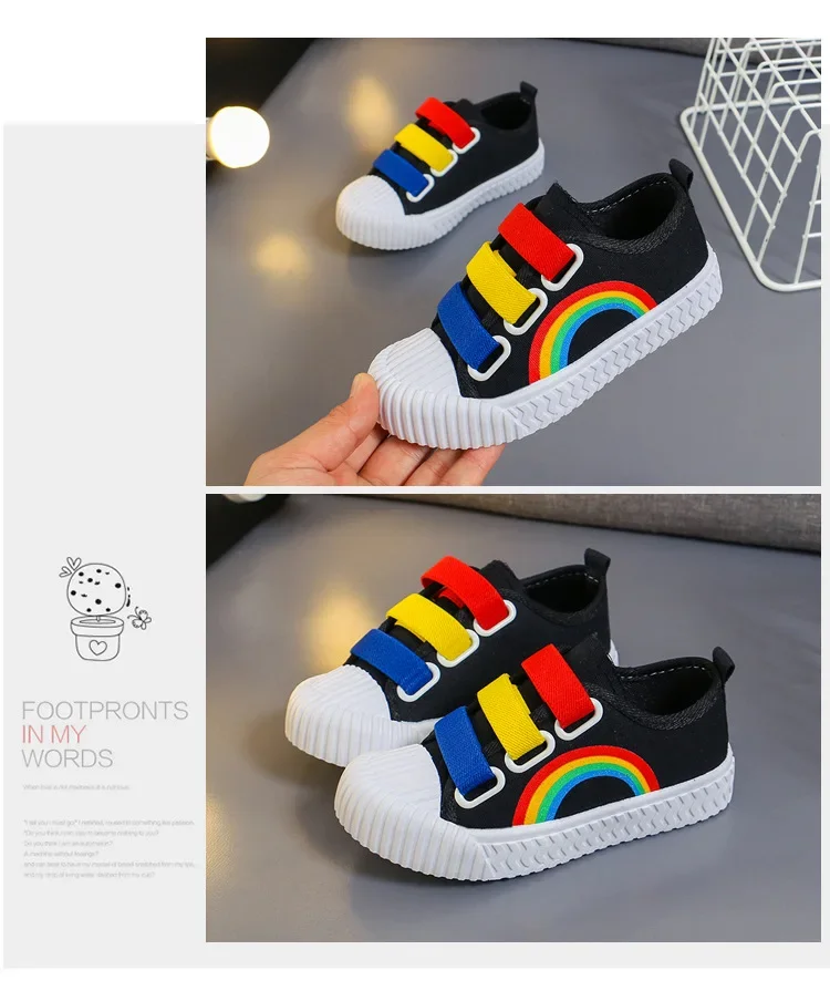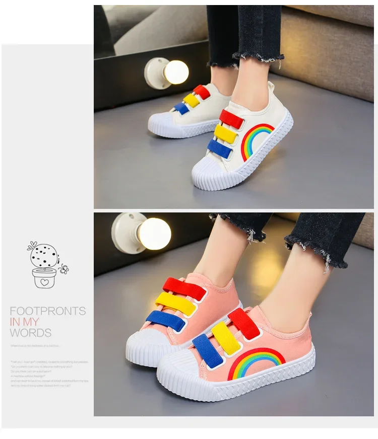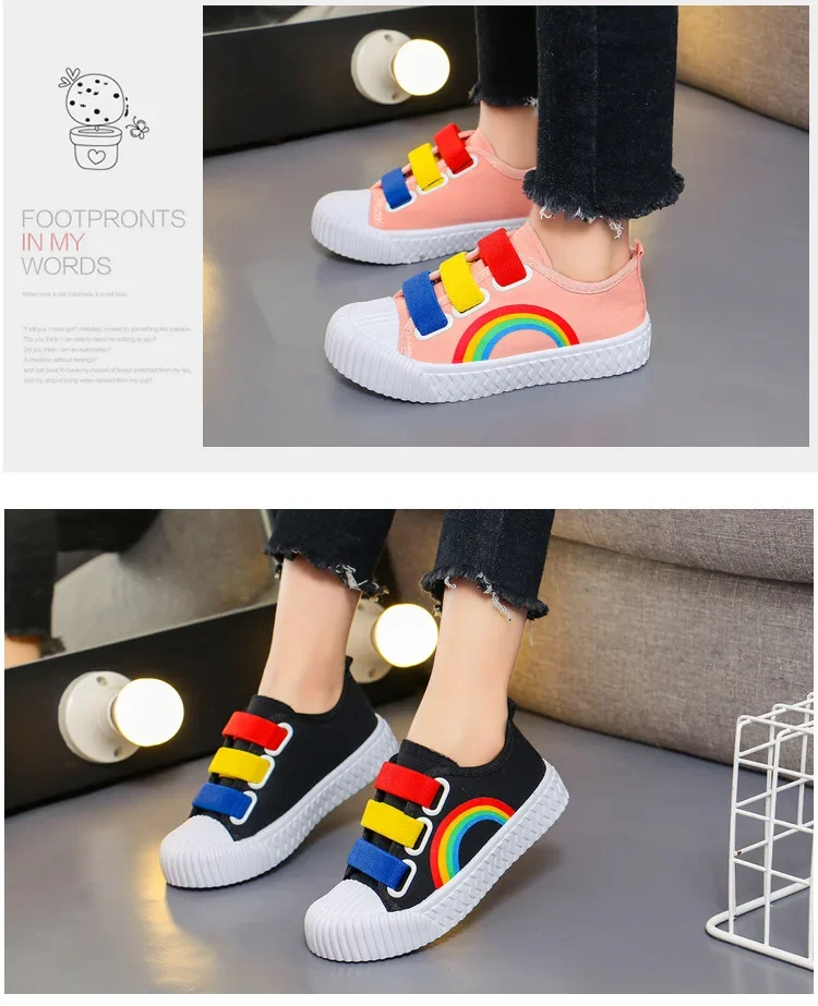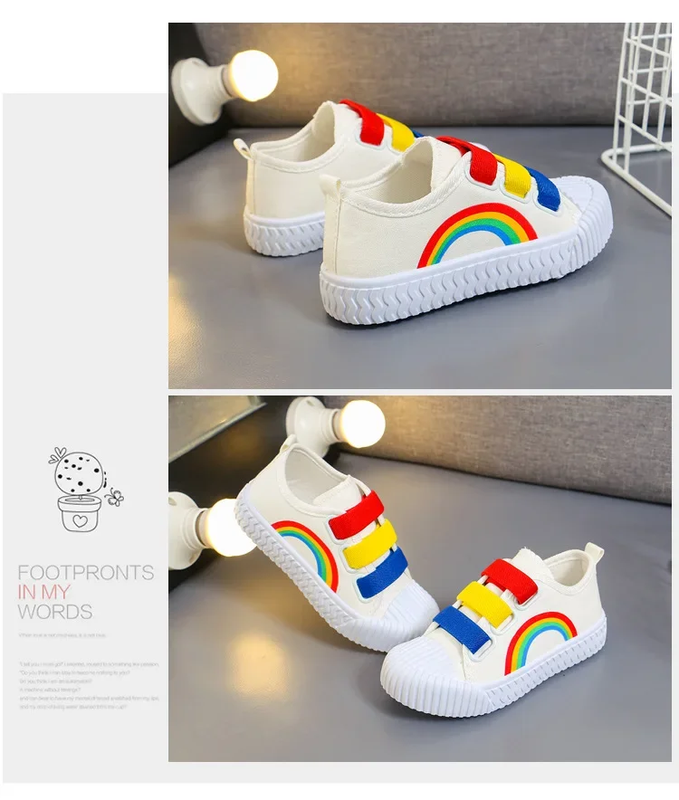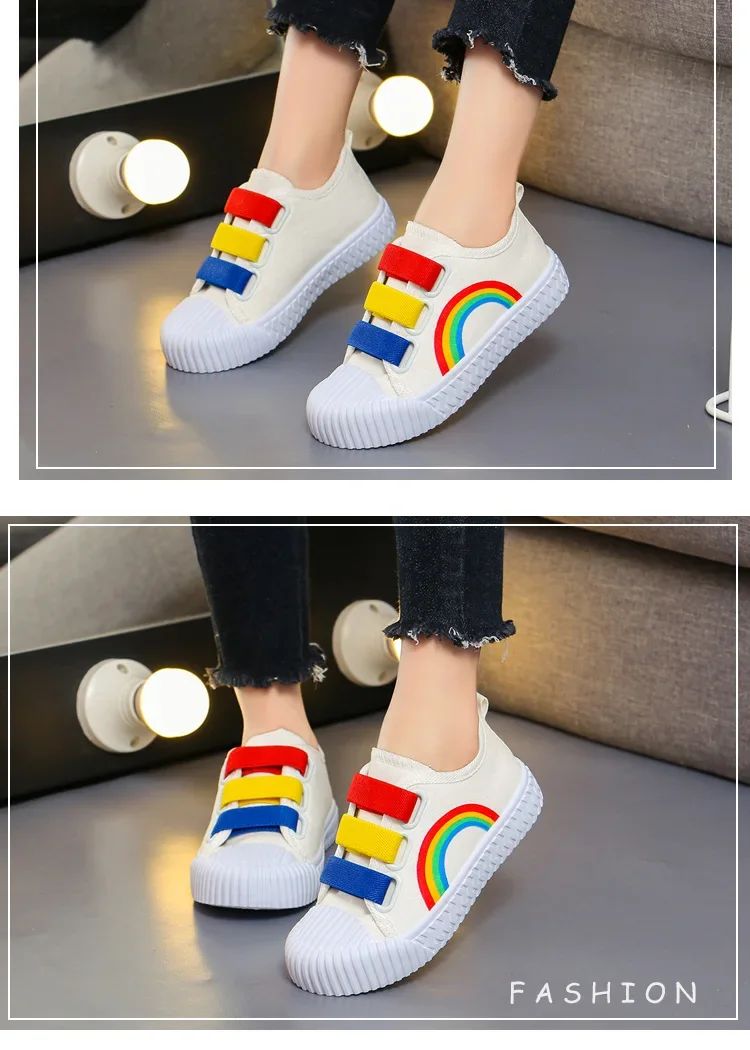 Kids Canvas Shoes Boy Girl Hook Loop Flat Rainbow Shoes Kids Sport Running Boys Spring Autumn Student Breathable Casual Shoes