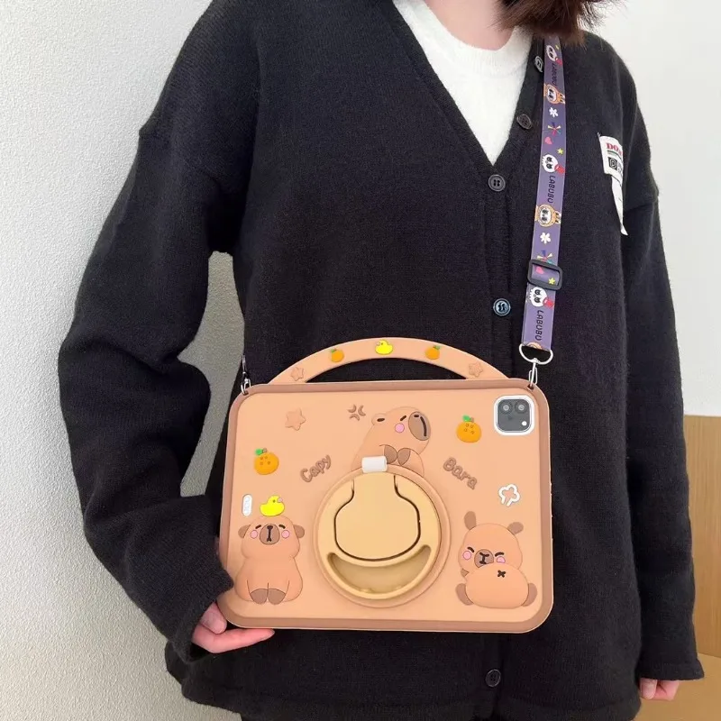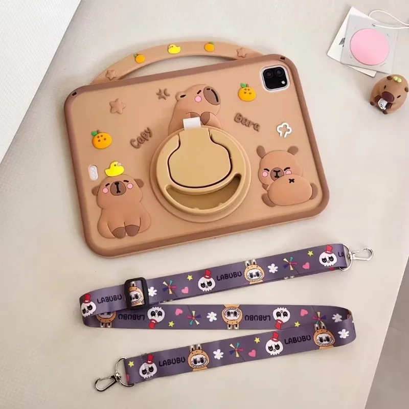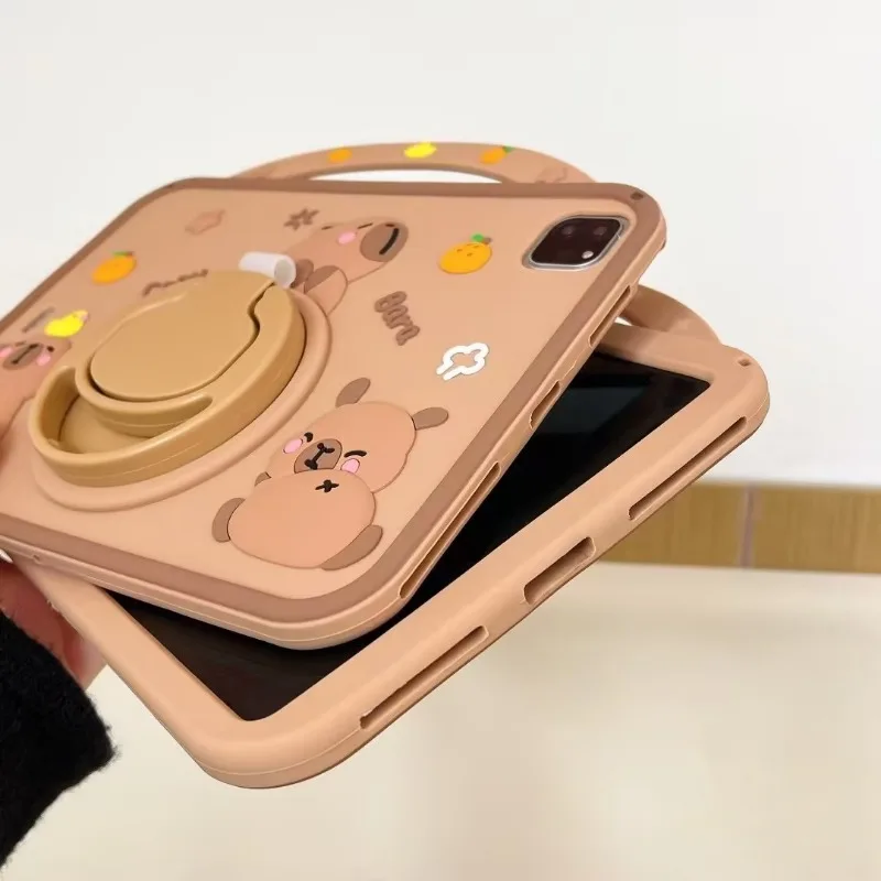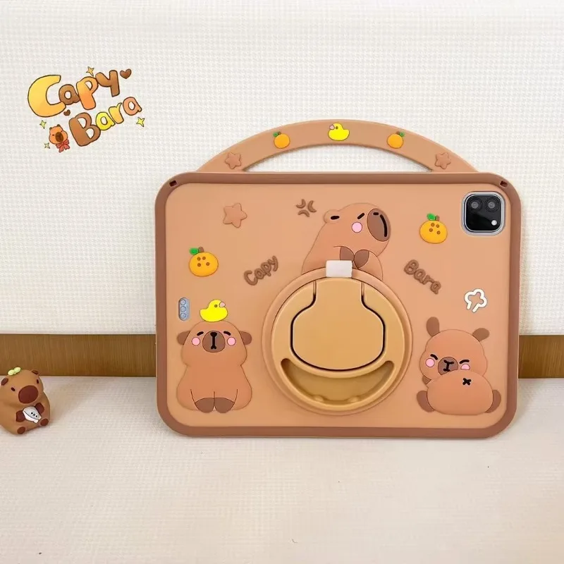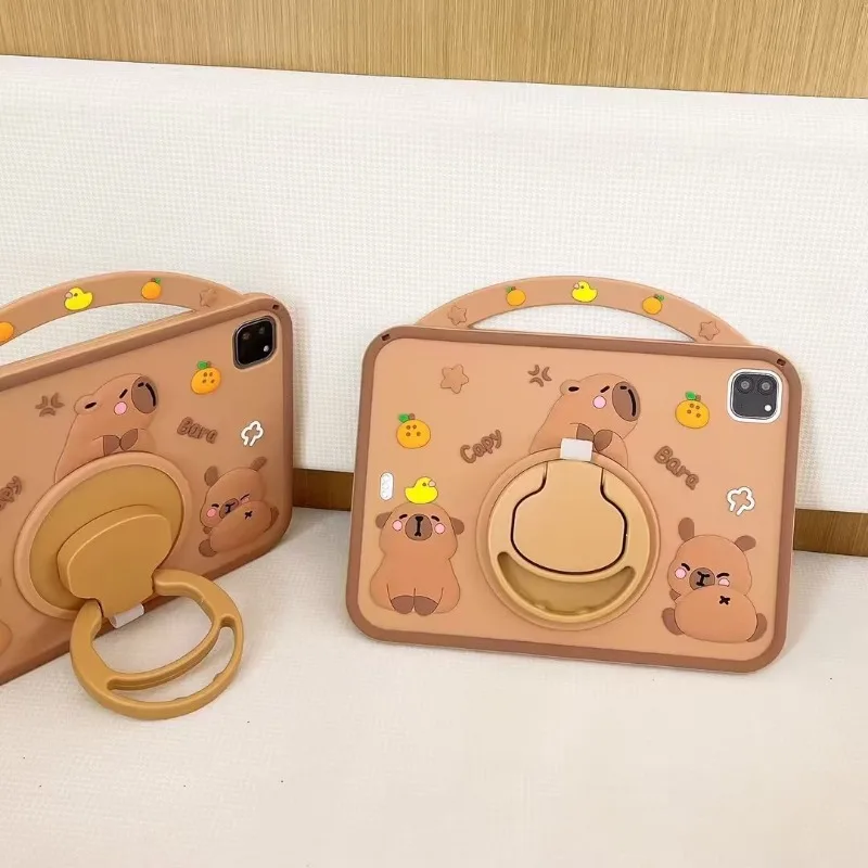 Kids Case for iPad Pro 11 2024 2th 1th 10.5 10.2 8th 7th 9.7 6th 5th Air 11 4 3 2 1 Cute Capybara Cover for iPad mini 7 6 5 4 3 2 1 with 360 Degree Rotating Bracket