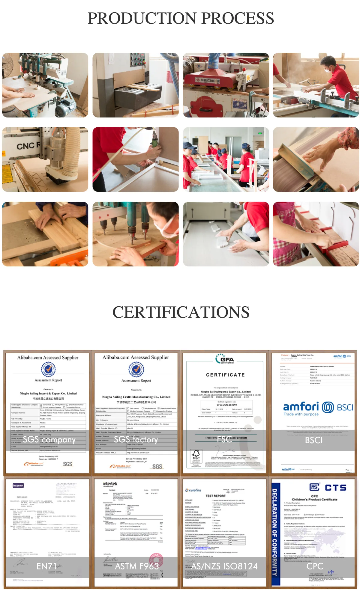 Ningbo Sailing is an experience manufactory and exporter of wooden toys, and has our own manufactory with BSCI Certificate. Meanwhile we have our own designers, and we always design new products for the coming season and can design according to customers requirements. We supply OEM and ODM. Sailing toys meet the relevant international safety standards, such as EN71, ASTM F963 and AS/NZS ISO8124 and so on. Our price is competitive, our production capacity is strong, and our service is complete. We will reply to your inquires in time, strictly control every process and delivery high quality goods on time. We love wooden toys, and we love environment too. Be responsible: Recycle. Sailing Team Ningbo Sailing Import & Export Co., Limited