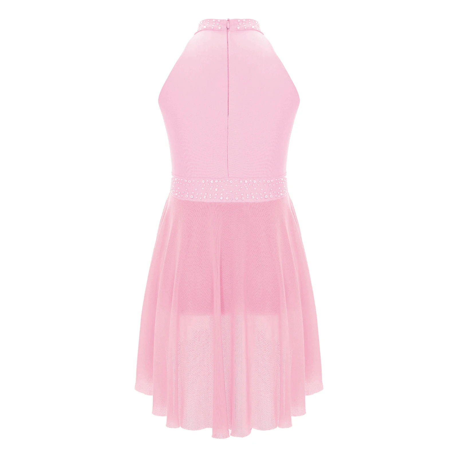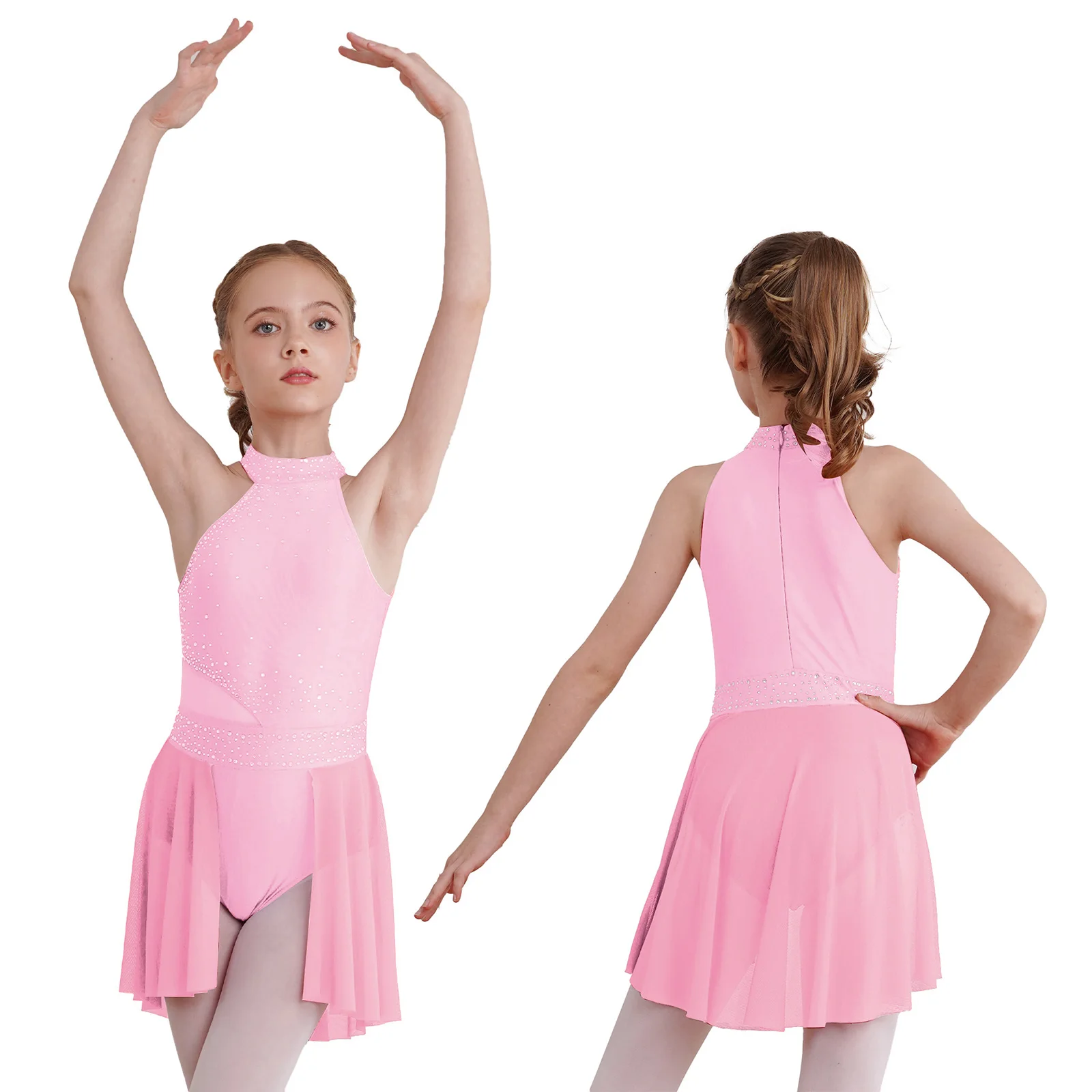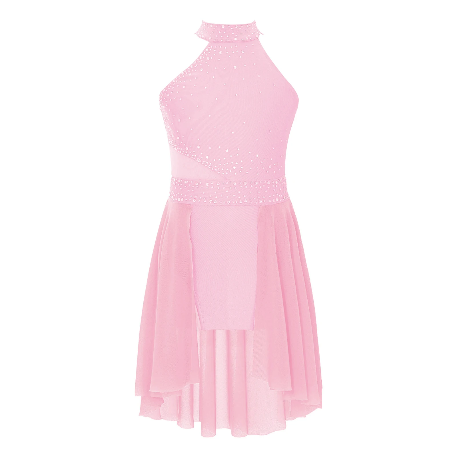 Sleeveless dance dress for girls, embellished with rhinestones, sparkle under the light to brighten up any performance.