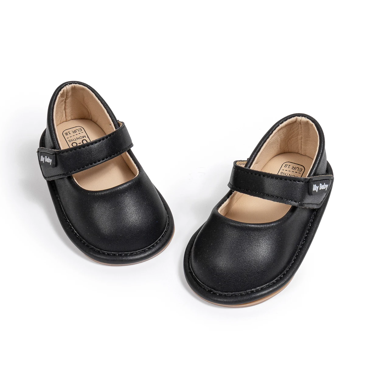 KIDSUN Fashion Black Leather Baby Shoes Girls Infant Non-Slip First Walker Crib Shoes Princess Wedding Dress Shoes Ballet Flats